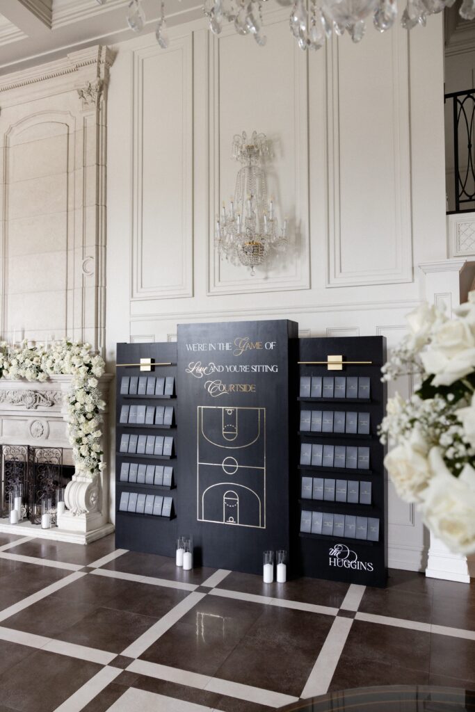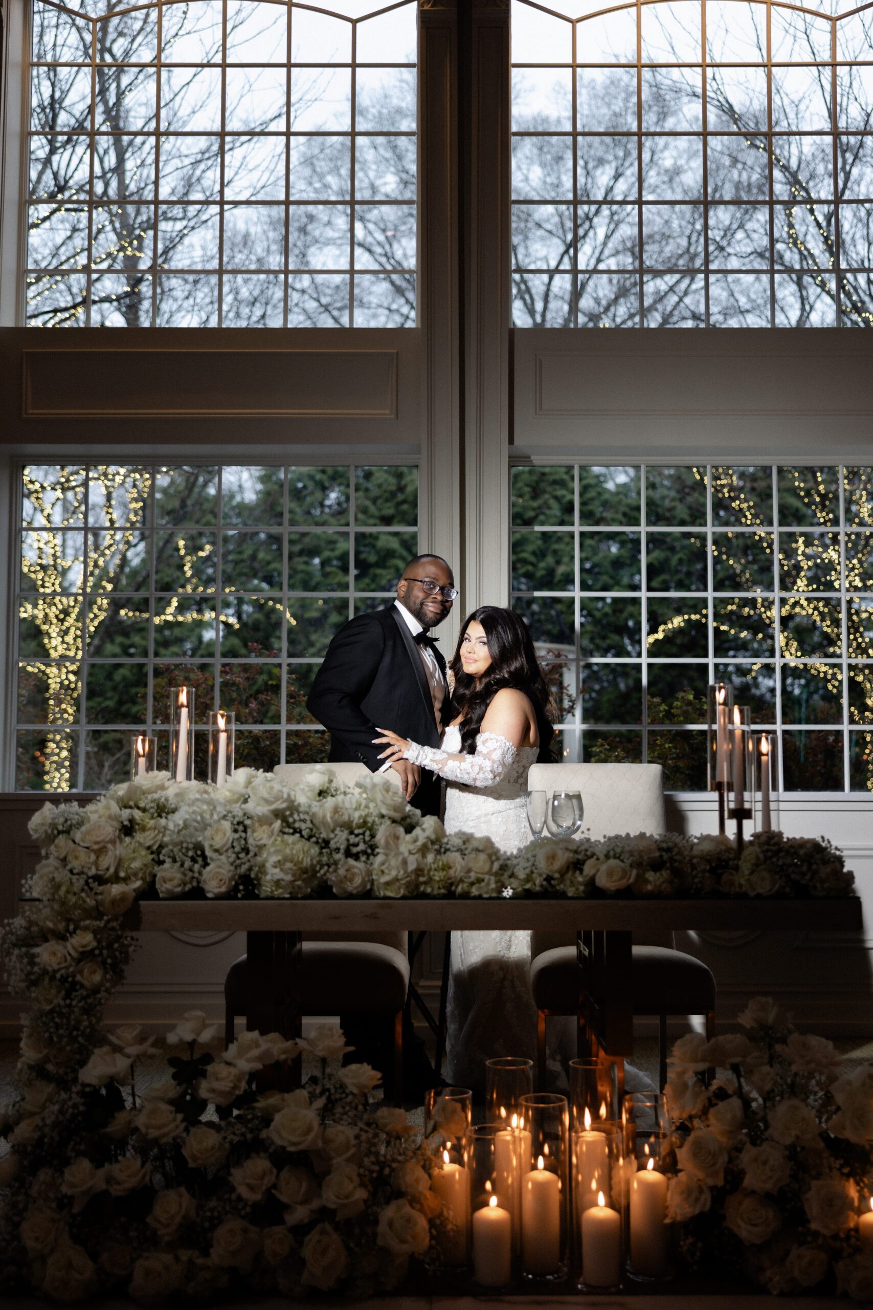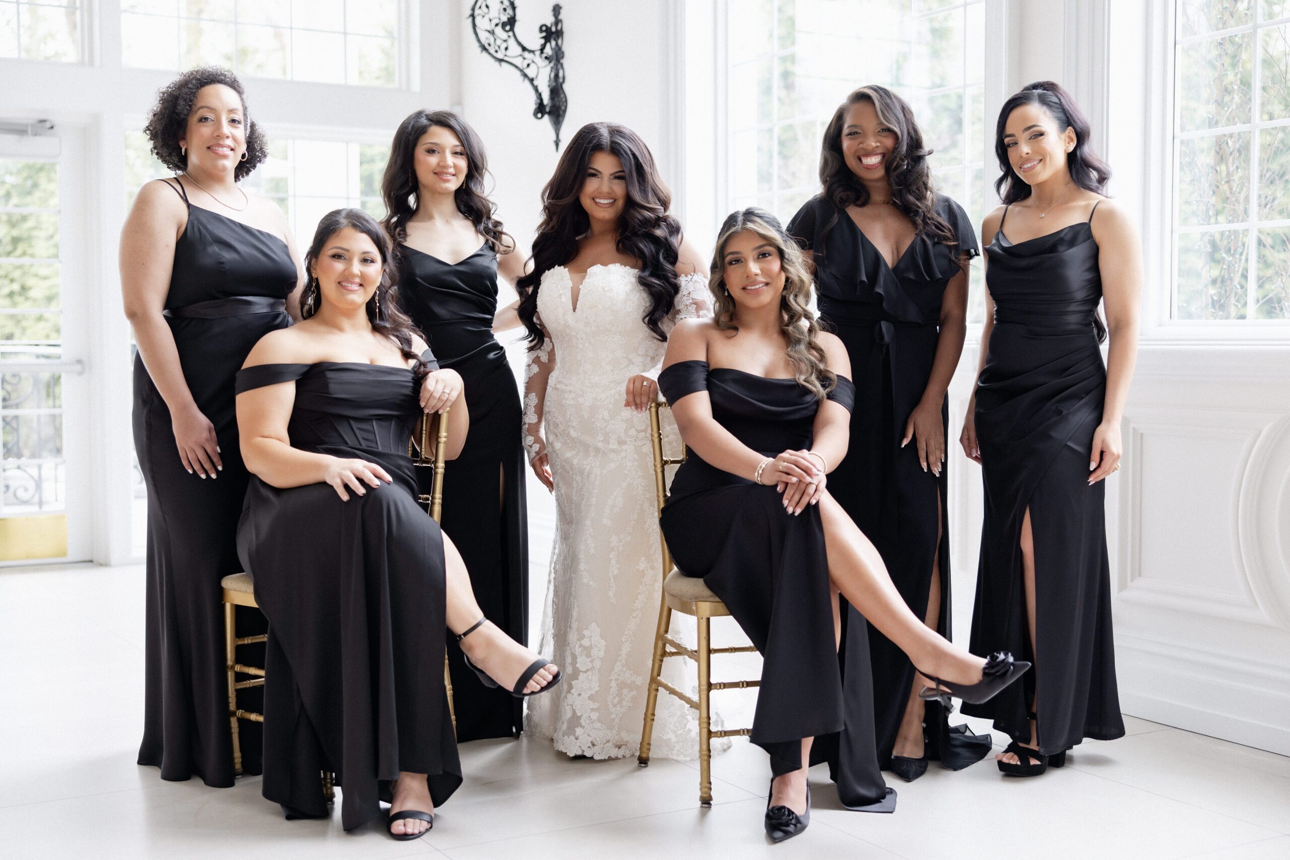 They wanted a classy and timeless look so they stuck with black and white as their color scheme. They had a black tie dress code. The bridesmaids were dressed in black gowns from Birdie Grey.