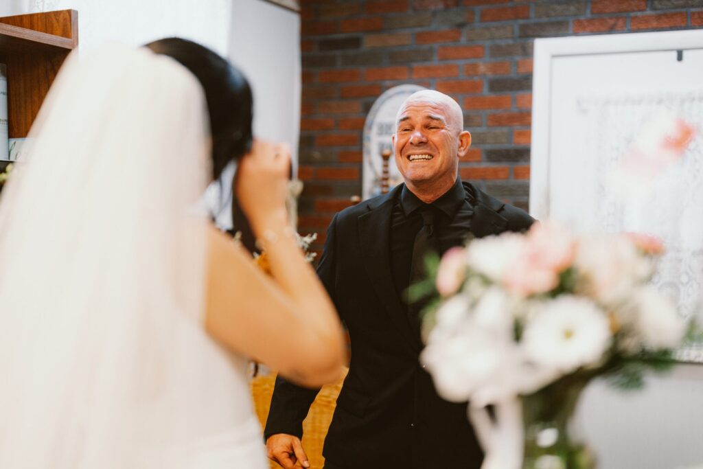 “We originally had a venue booked in the city but then Covid-19 restrictions made it impossible for us to have it there so we decided to use our backyard,” says Giana. “From the beginning, I wanted to have a backyard wedding but my husband was against it. We told our planner we wanted the most over-the-top backyard wedding and she made that happen. We did have our ceremony at Bespoke Home + Life in Collingswood. I got ready at my grand-mom’s salon, Mary Jo’s Hair Fashion in Audubon. My mom got ready there for her wedding and now I was able to as well.”