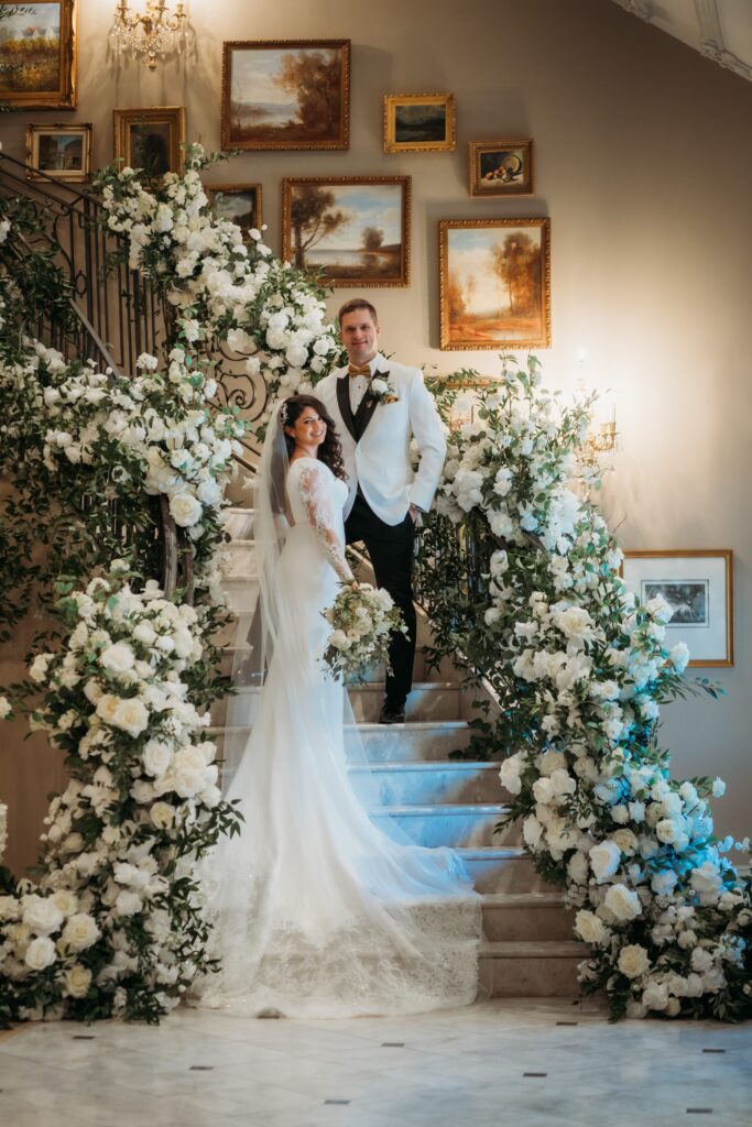 “Our first look and private vows were unforgettable,” says Julia. “I was nervous walking down the stairs to meet him, and he was already crying when he turned around. Pete hadn’t seen my dress or any details, and the moment just felt so personal and emotional.”