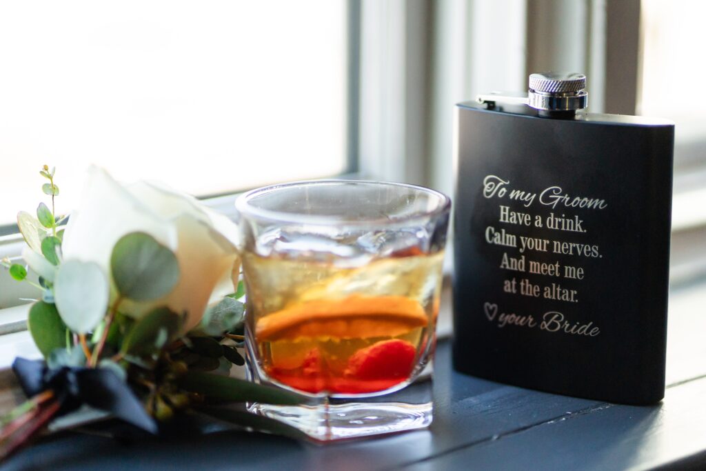 They had signature drinks (even one for their cat), a fireball shot entrance, bubble guns, glow sticks, and mini cutouts of their heads on sticks for fun on the dance floor.