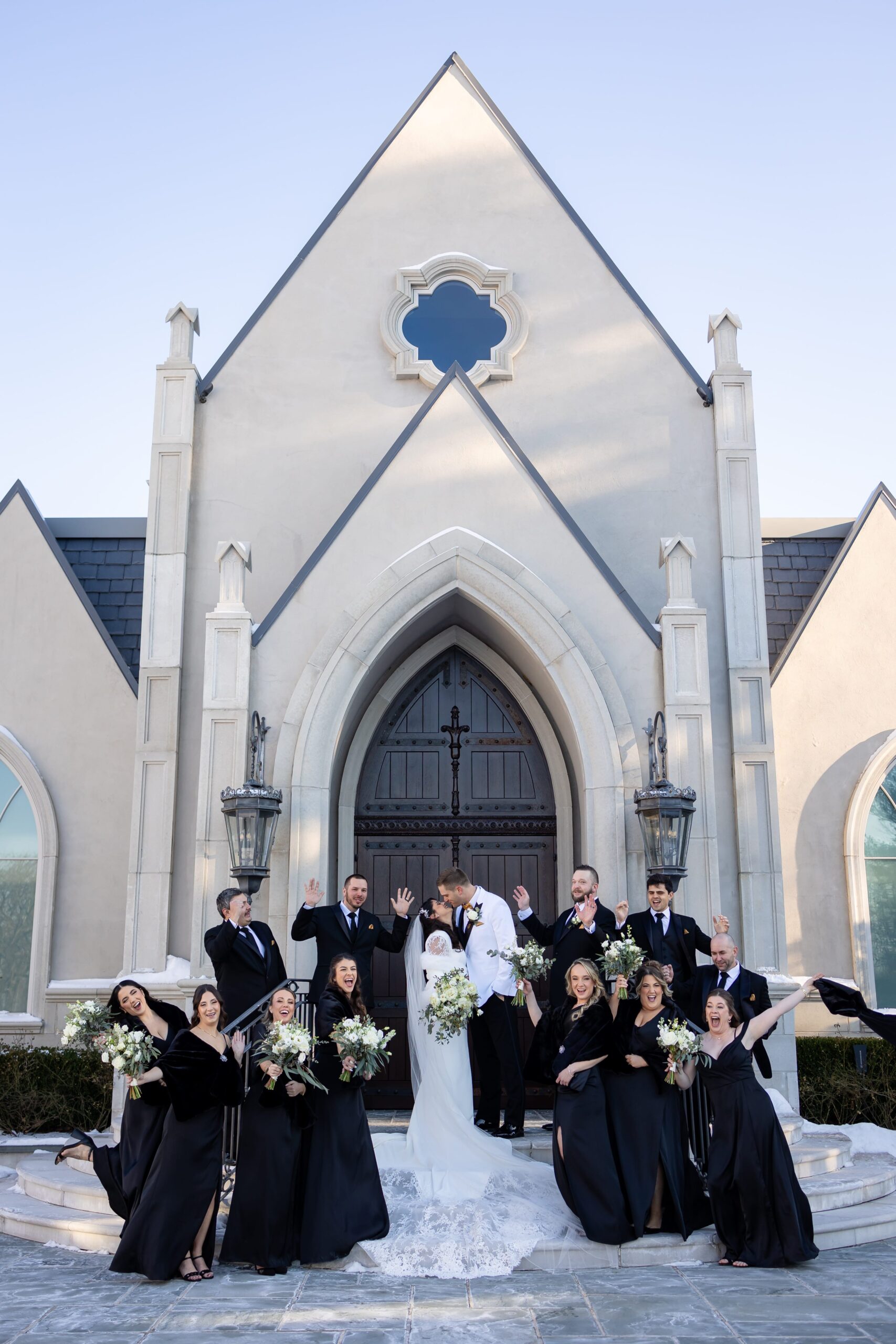 “We loved the elegant chapel, the gardens, and the mix of light and moody details,” says Julia. “It had plenty of space for our big guest list, and the service was unmatched.”