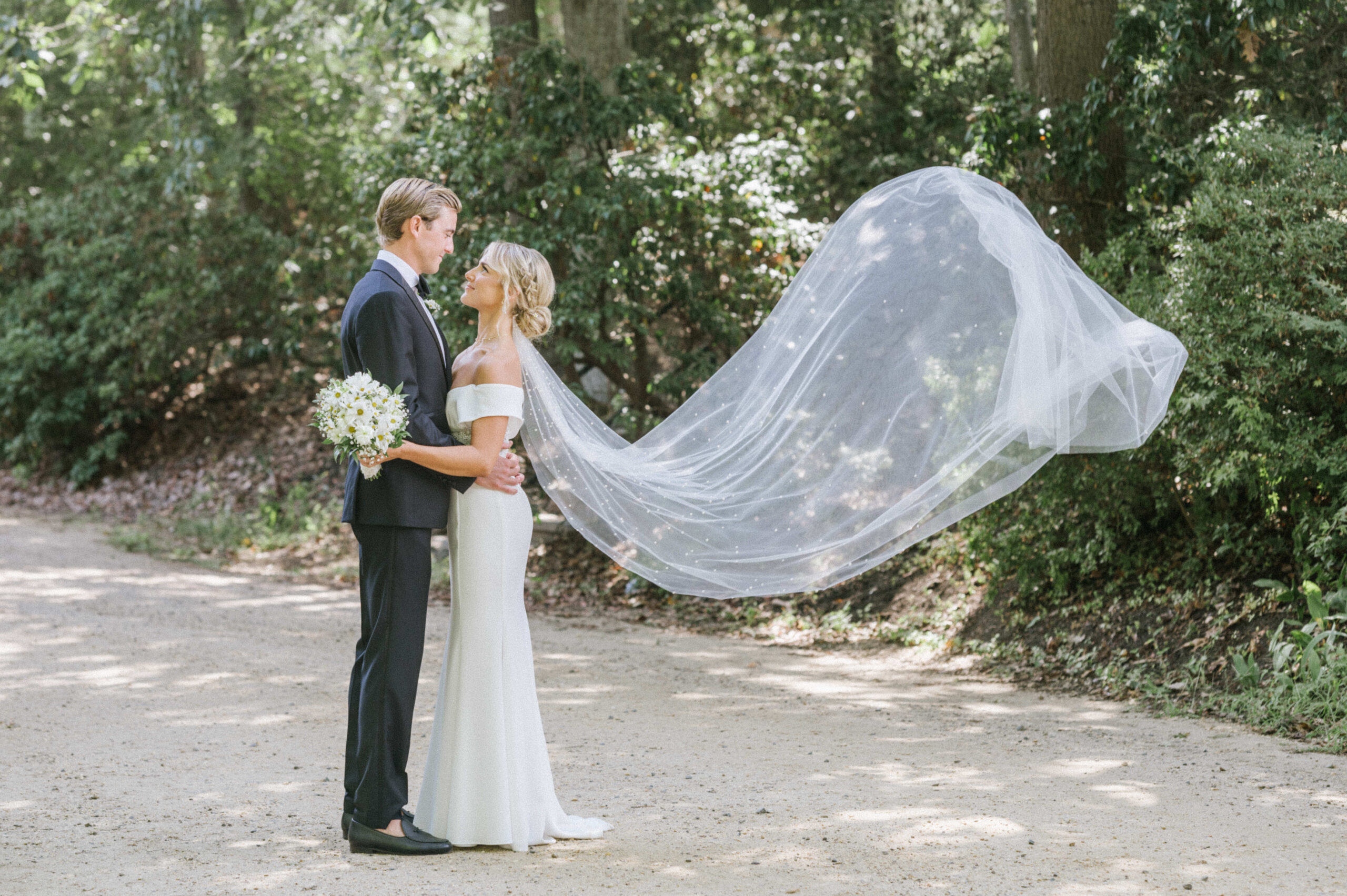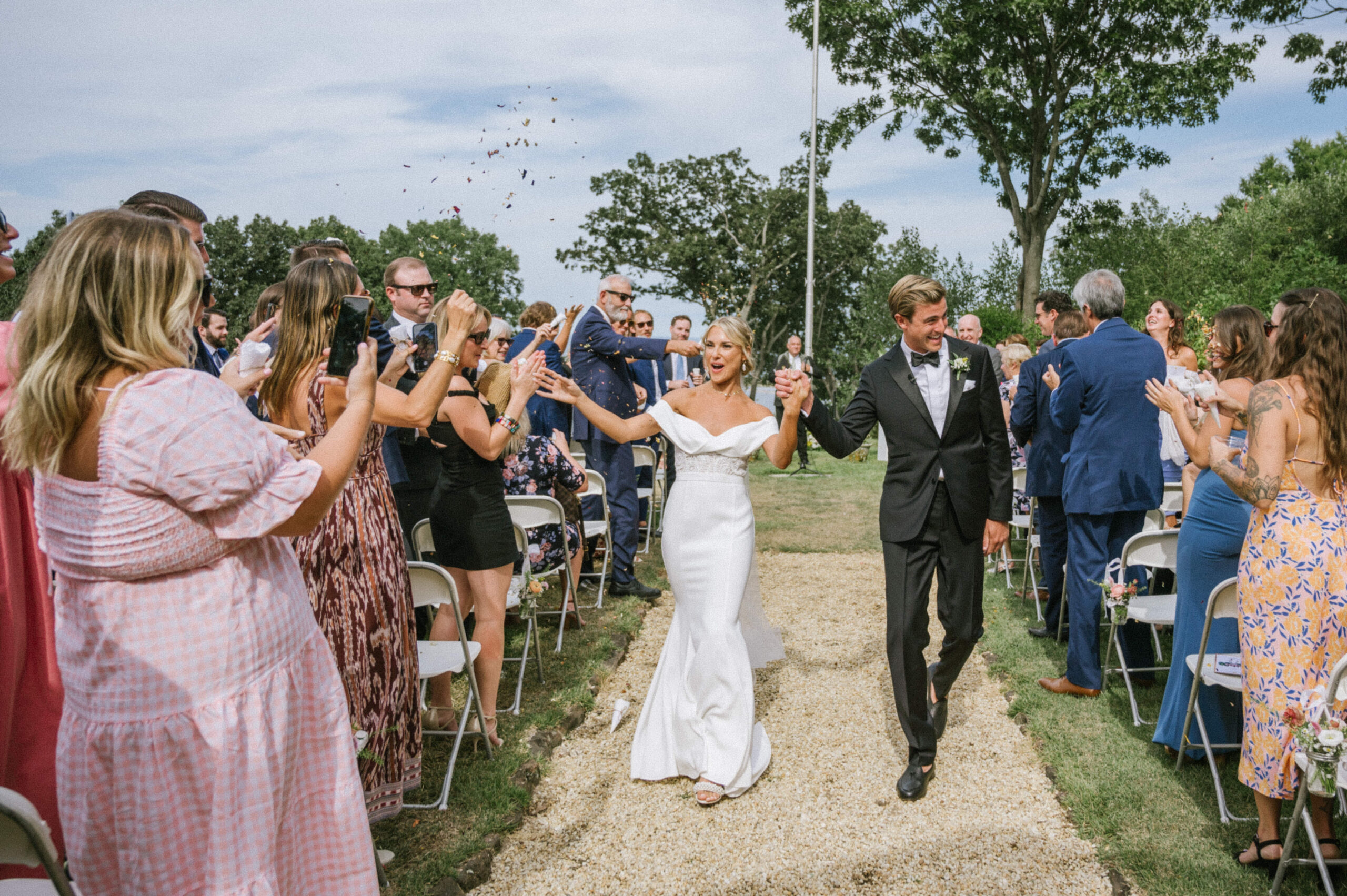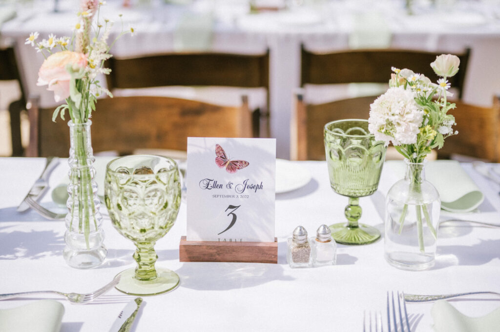 For their September 3, 2022 Water Witch Club wedding, Ellen and Joe created a wildflower and butterfly fairytale. “A swallowtail butterfly was blessing the day and flying from flower to flower as our florist was setting up, and even as I was walking down the aisle,” says Ellen.