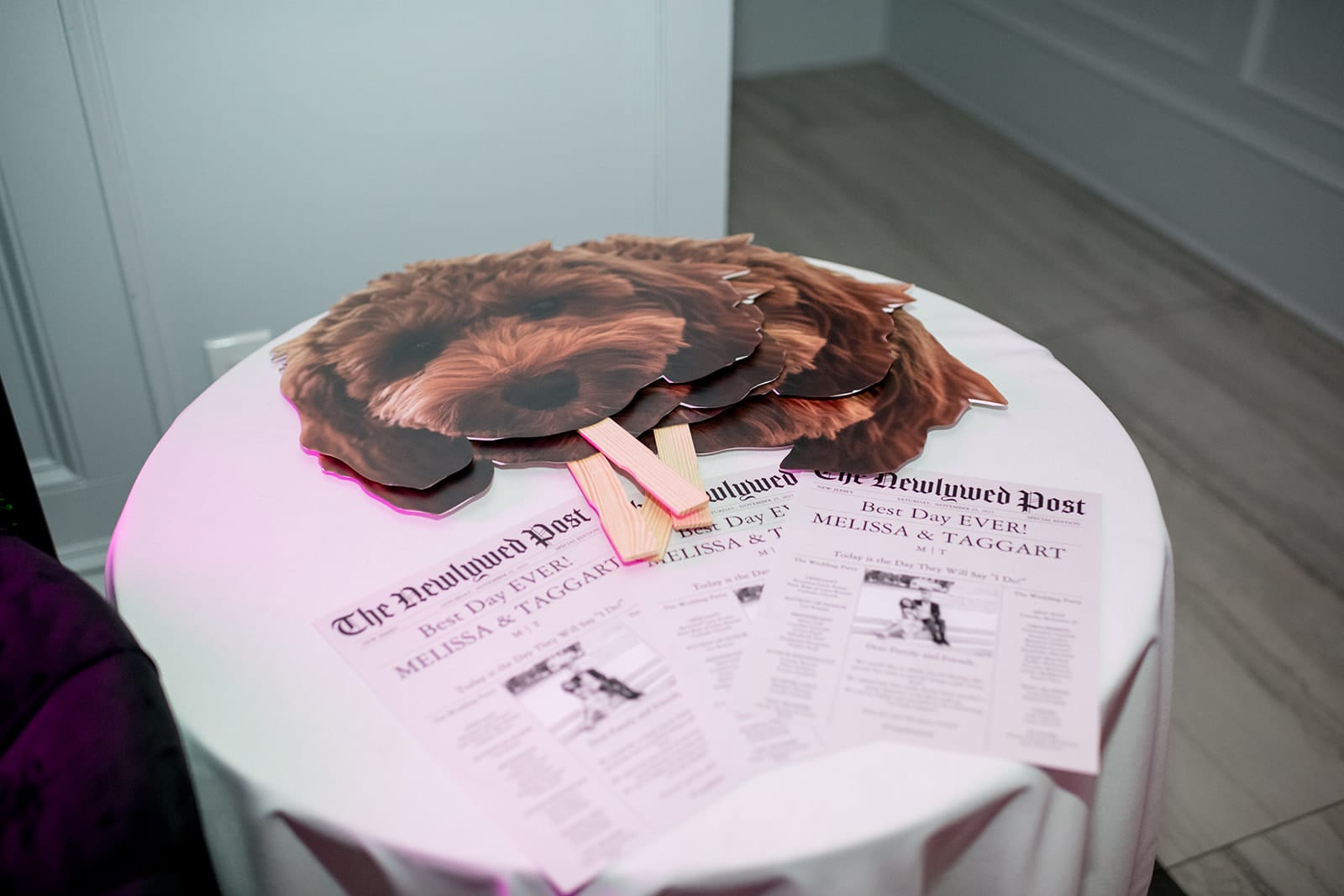 Incorporating their Mini Irish Doodle, Rooney, into their celebration, with the signature drinks (a MargaROONEy), on their cake, on their cocktail napkins, and on large poster-size popsicle sticks that took over the dance floor.