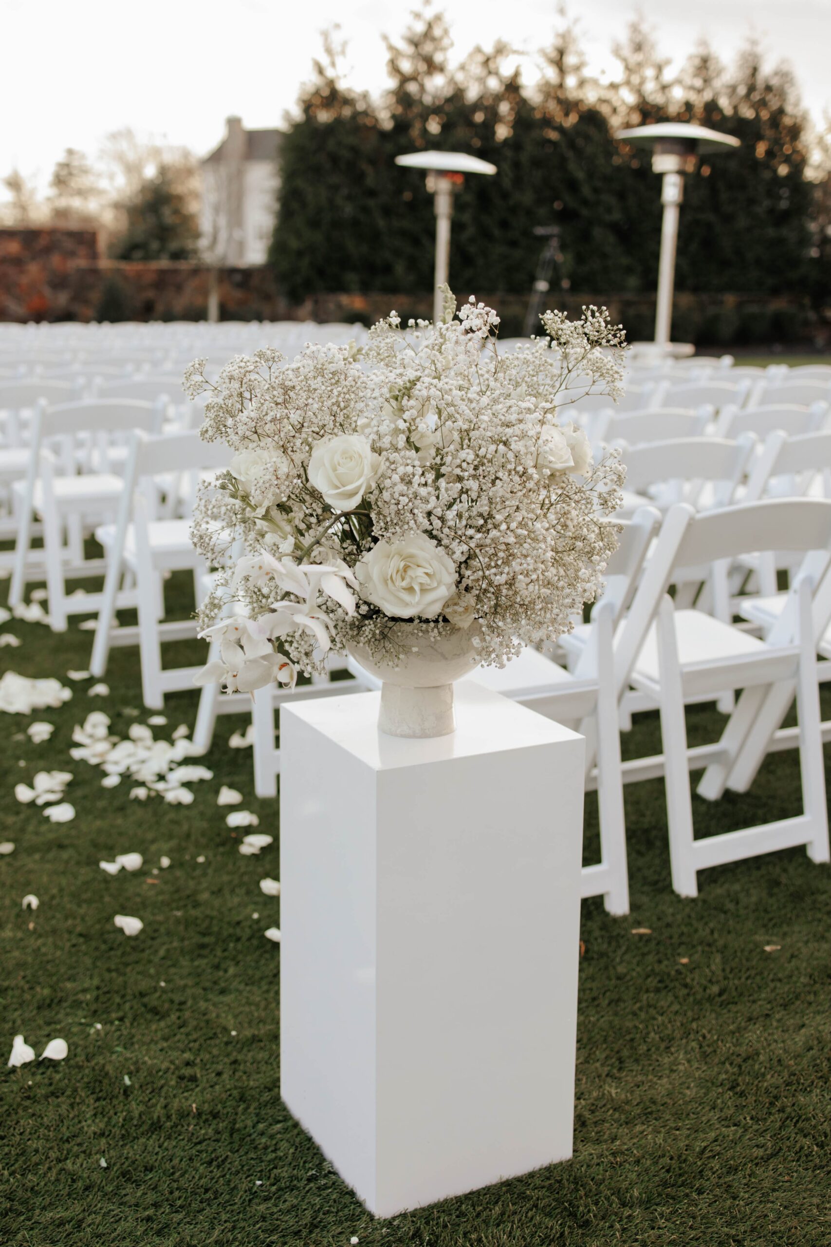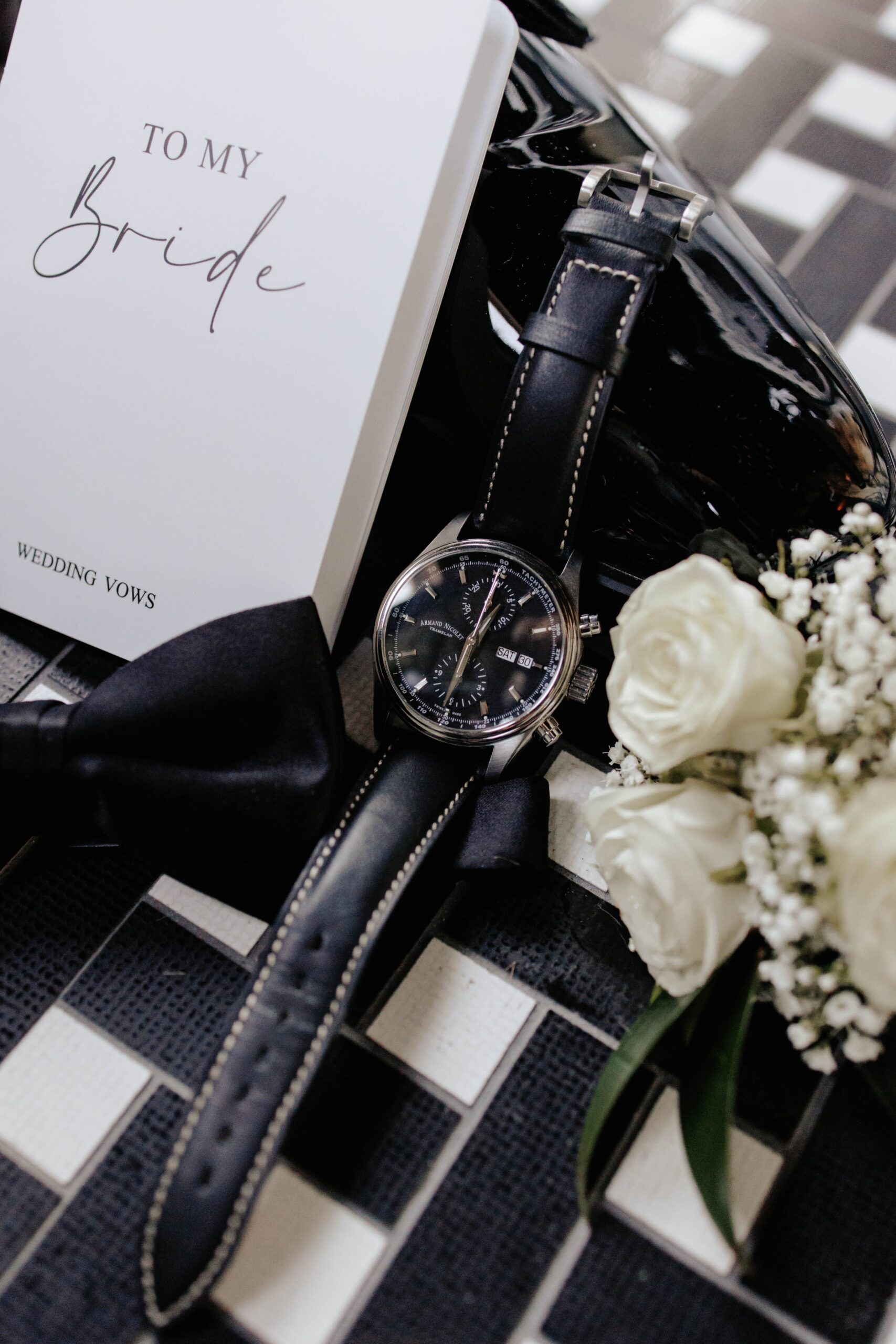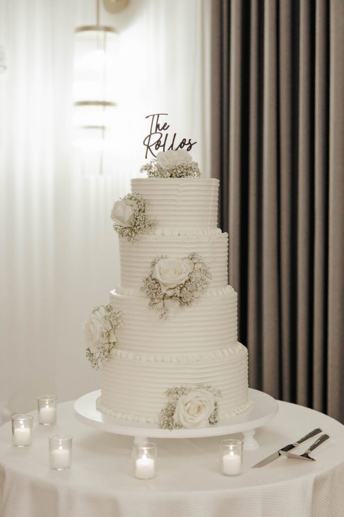 “We wanted to create an elegant and romantic atmosphere, so we decided to have both our bridal party and guests dressed in black,” says Lauren. “It perfectly complemented our black-and-white theme and added to the sophisticated vibe we envisioned for the celebration.”