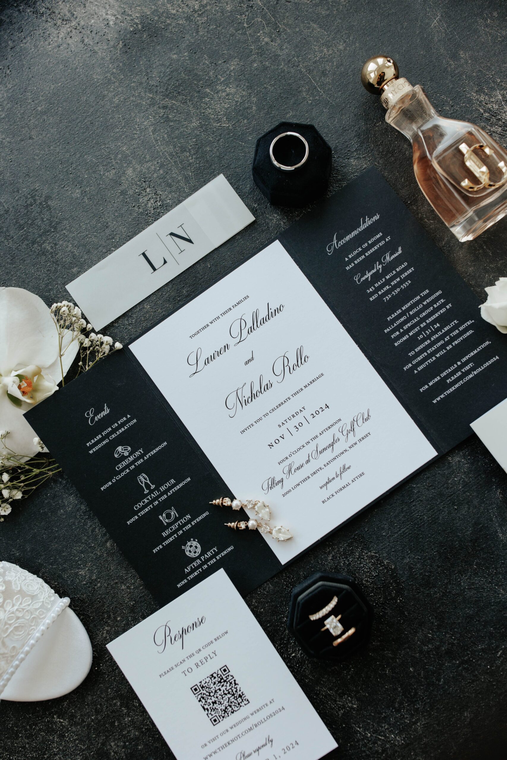 For their big day on November 30, 2024, Lauren and Nick chose a formal, black-tie optional dress code and requested that everyone wear black attire.
