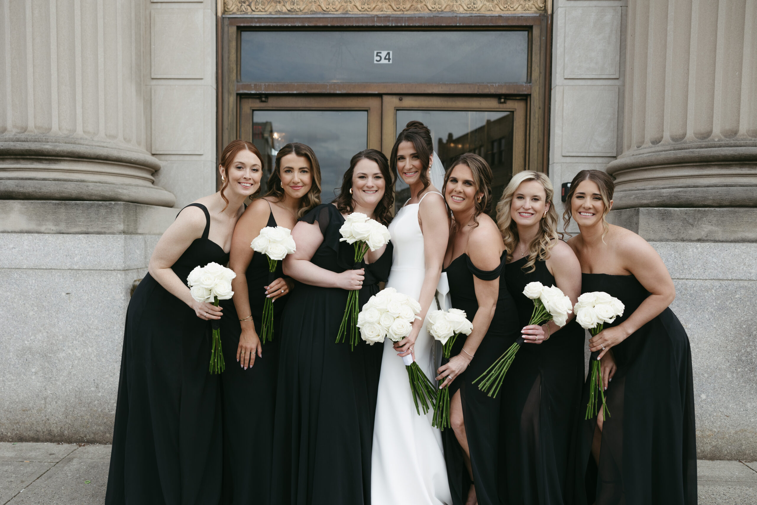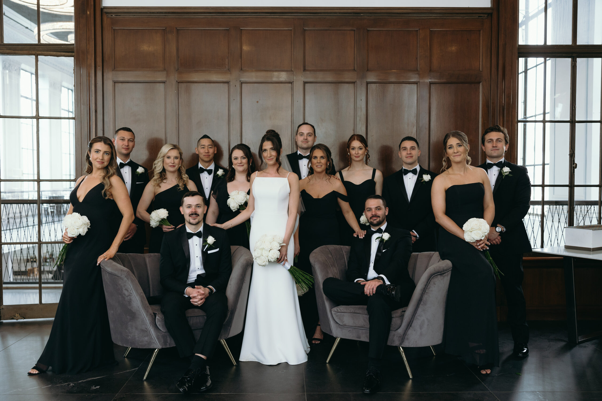 “The men wore classic tuxedos rented from Prima in Madison and they all looked so handsome. My bridesmaids wore black Jenny Yoo gowns in a variety of styles which felt chic and effortless.”