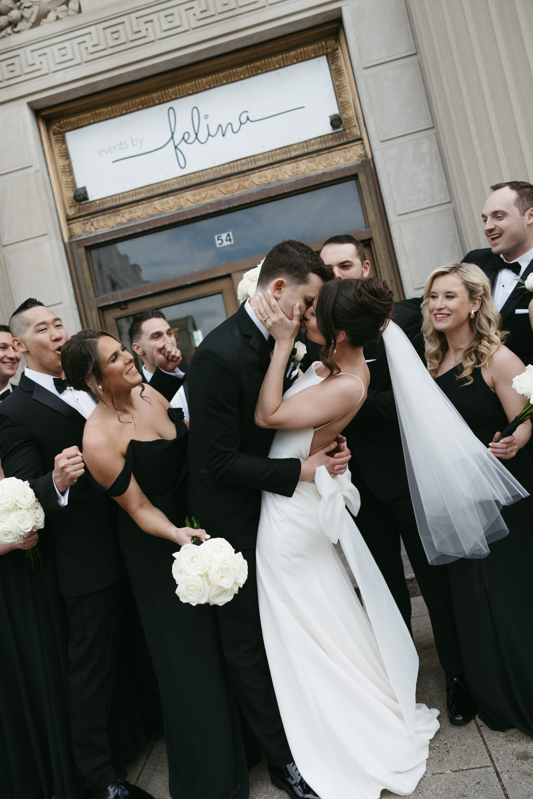 When Julie and Matthew began searching for the perfect New Jersey wedding venue, they knew it the moment they walked into Felina in Ridgewood. With soaring ceilings, a tiled dance floor, a vintage bank vault, and a wraparound mezzanine, the space felt like them — classic, chic, and just a little unexpected. The couple married there on April 19, 2024, celebrating with timeless black-and-white style, lush white floral arrangements by Beers Flowers, and a night of food, dancing, and unforgettable moments beautifully captured by Aislinn Rose Photography.