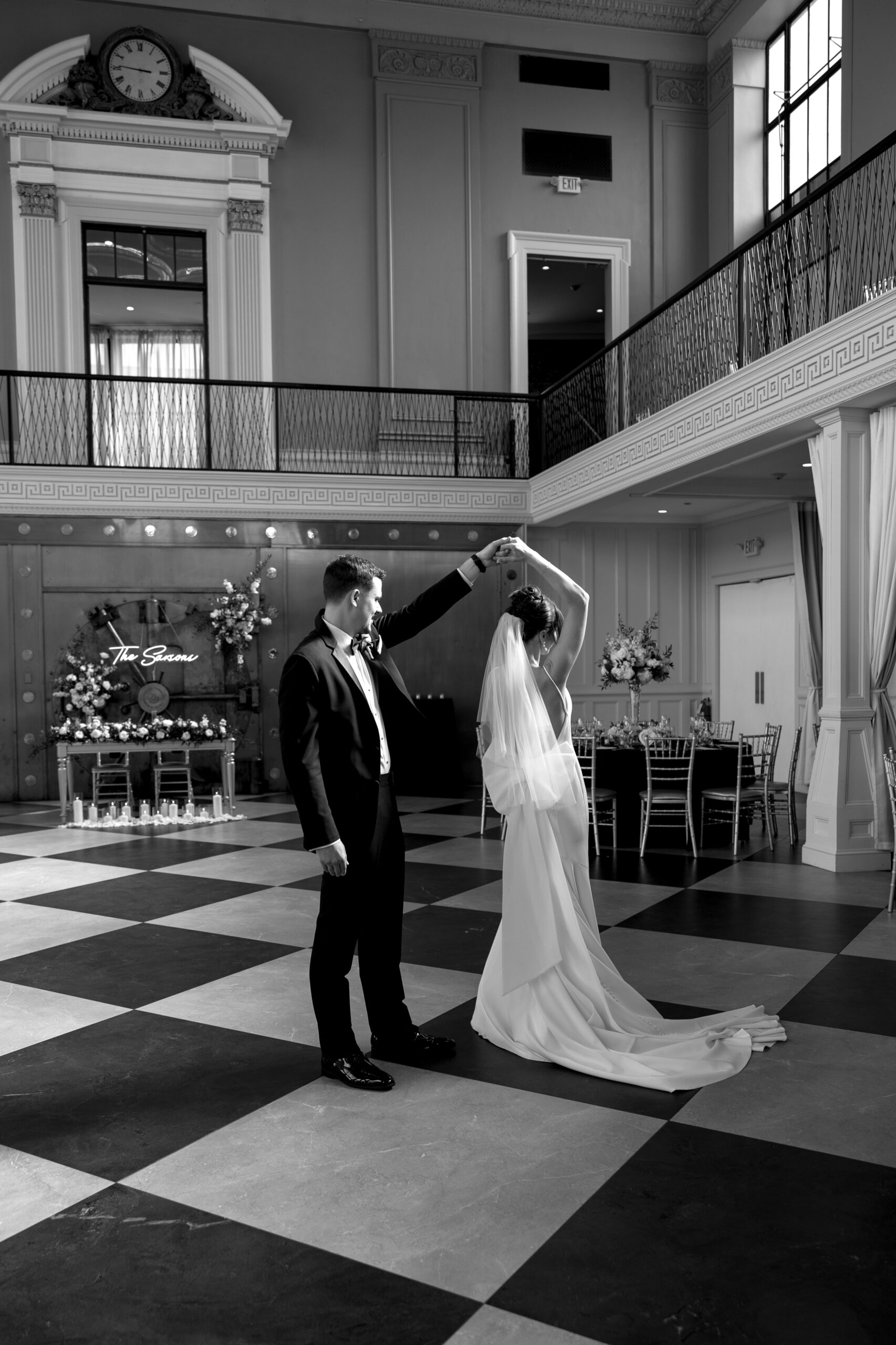 “The moment we stepped into Felina, we knew it was the venue for us,” says Julie. “The high ceilings, tiled dance floor, vintage bank vault, and wraparound mezzanine immediately stood out.”