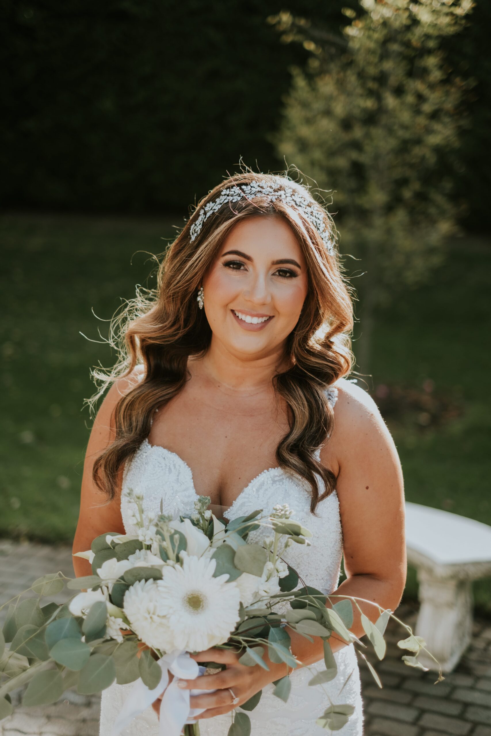 After trying on more than 50 gowns, Gillian committed to a gorgeous Calla Blanche gown with a long train. “[It] had very intricate beading but also beaded straps, which really stuck out from a lot of other dresses I tried.” She also wore a royal length veil with rhinestone details. “The drama is exactly what I was looking for on my wedding day.” Spoken like a true Sagittarius!