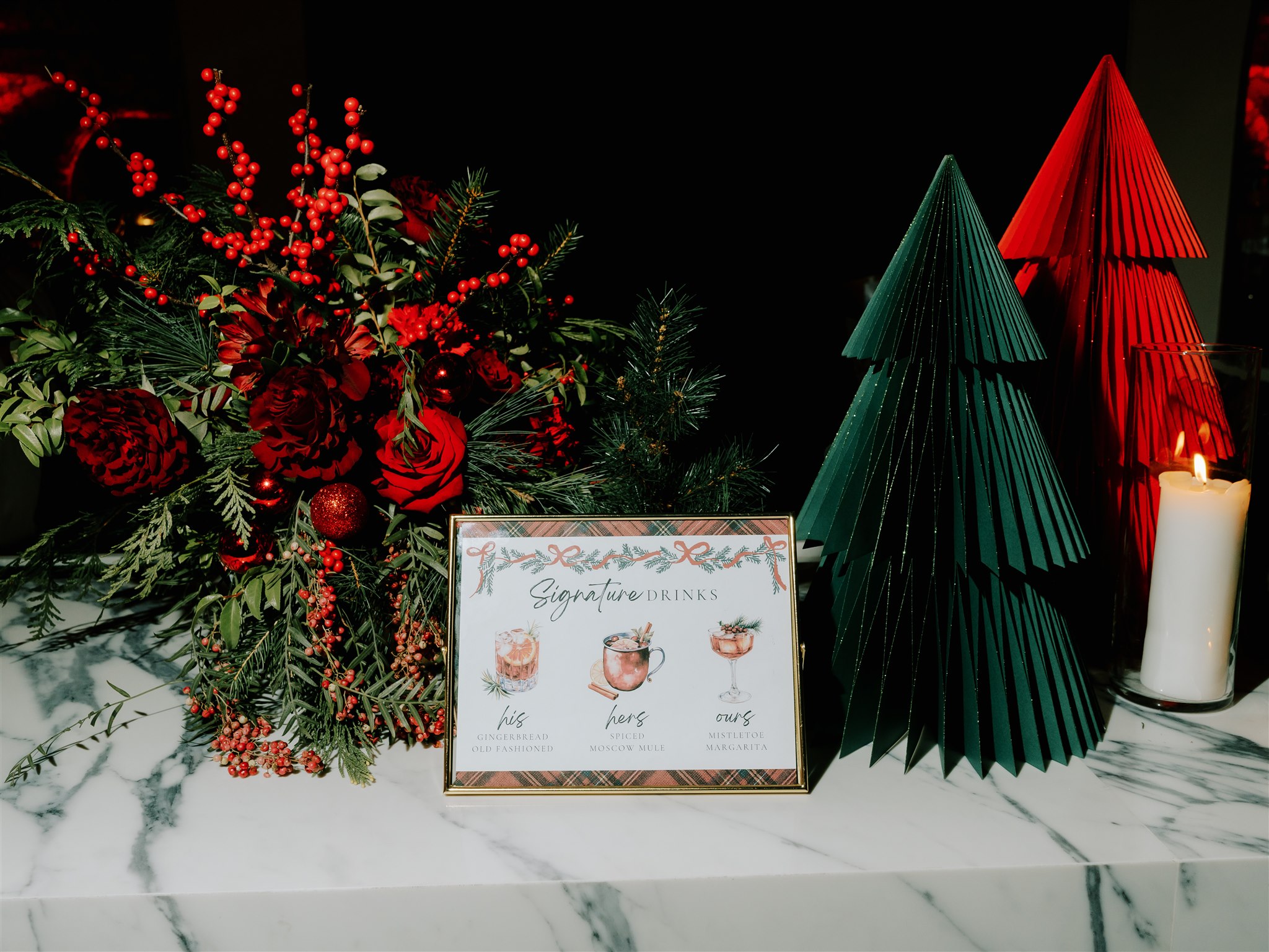 “Our festive nutcracker and bell drink stirrers were such a small touch, but they stole the show,” says Erica. “They added the perfect dose of holiday cheer, a whimsical, sparkling detail that made every cocktail feel special.”