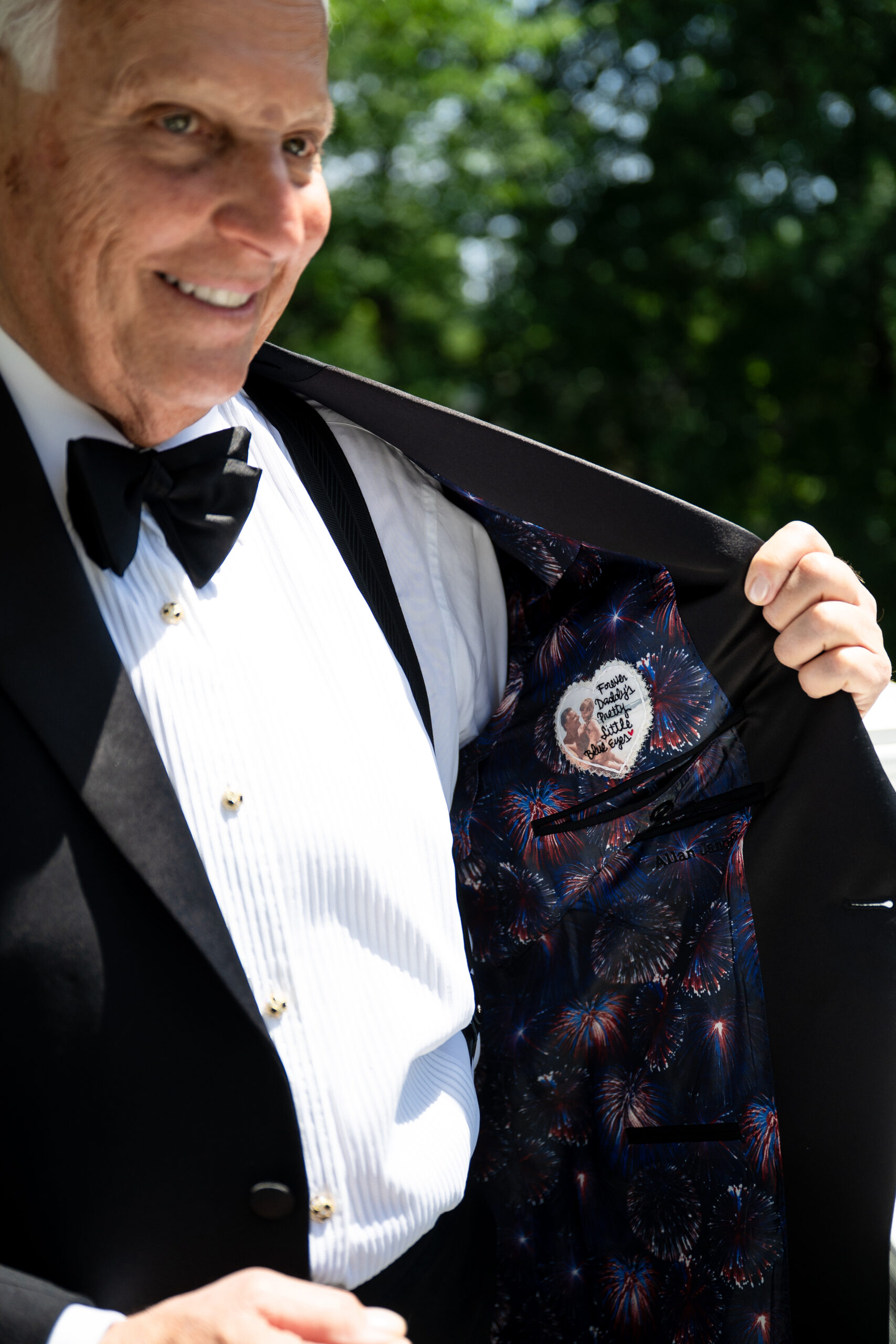“We sewed a patch into my dad’s jacket with a photo of us when I was a baby that read, ‘forever daddy’s pretty little blue eyes,’ which is what he’s called me my whole life.”