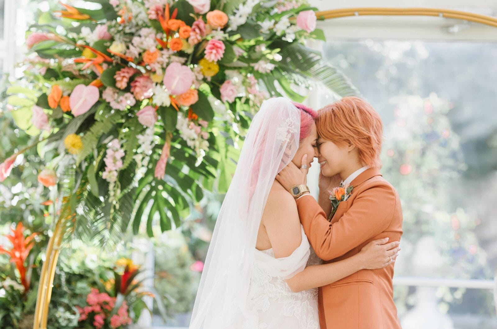 Both agree that walking down the aisle on August 13, 2023 took their breath away. “I saw her, I saw family,” says Tanya. “The sun was shining into the conservatory, and everything was glowing.”