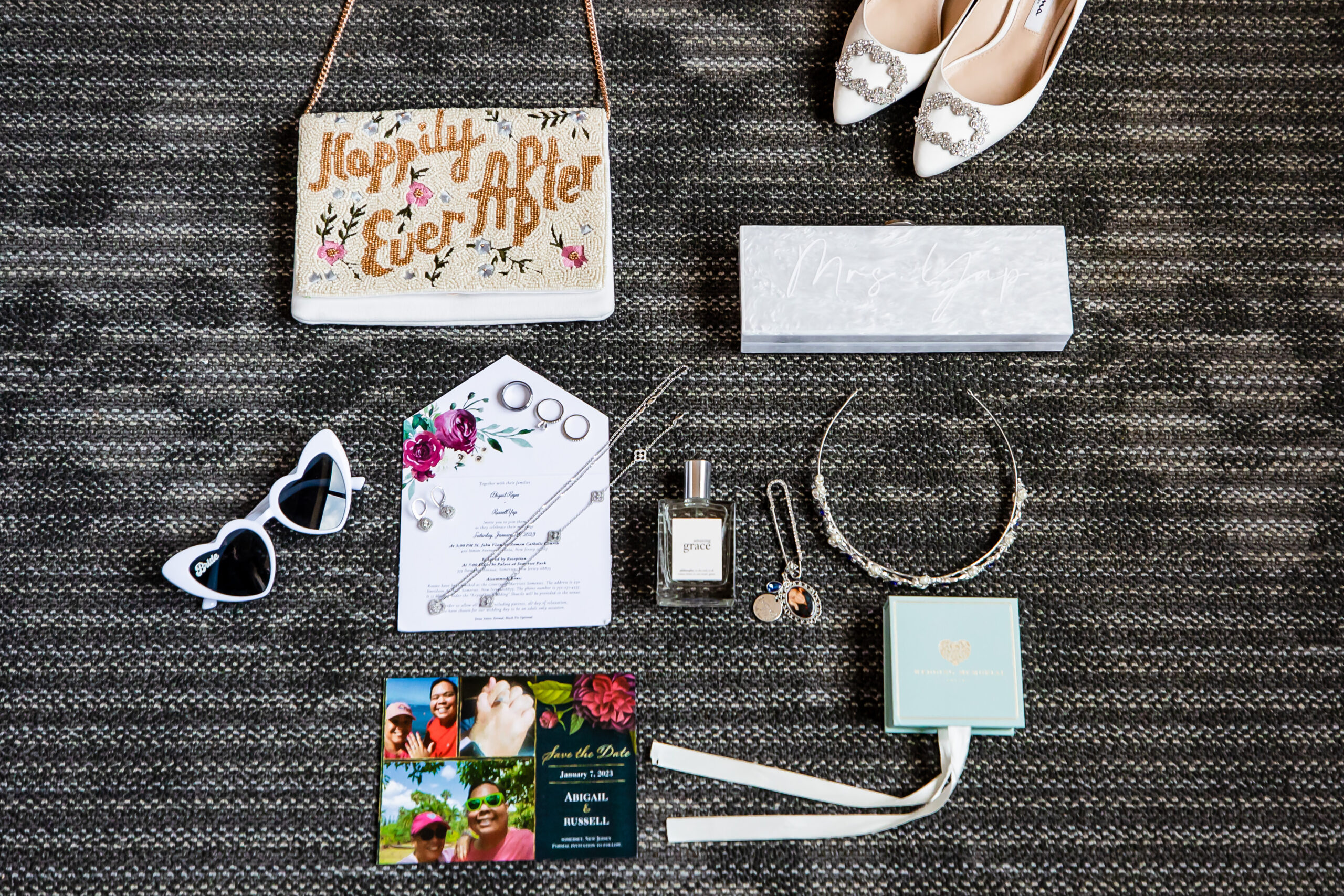 Russ proposed to Abby in Hawaii in 2021. “It was May 17—an extension of Tax Day, that’s how I remember,” says Abby, who is the staff accountant for New Jersey Monthly, New Jersey Bride and Design NJ magazines. Russ’ inspiration for the beach proposal? The 2004 flick 50 First Dates.