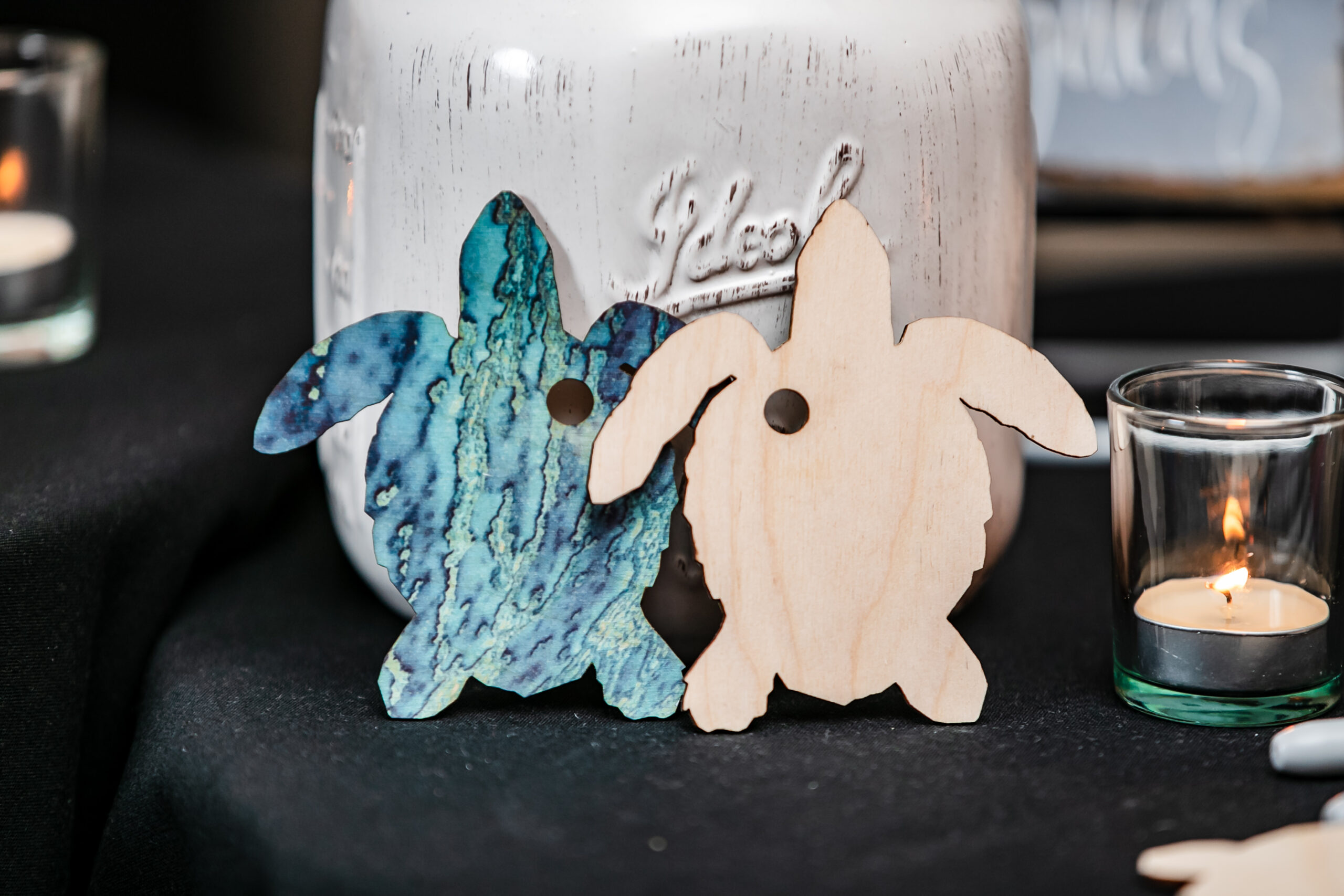 They had a treasure chest-shaped card box and wooden turtle cutouts as the guest book. For wedding gifts, Abby gave Russ a humidor and cigars with their last name on them. Russ gave Abby a Tiffany & Co. necklace. “I told him I would have been happy with a Happy Meal, and he was like, ‘no, this is our wedding day,’” says Abby.