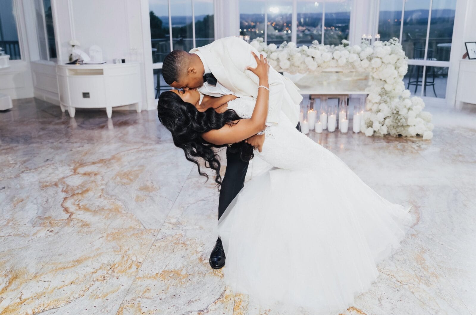 “We loved the reception space and the beautiful sunset views from the ballroom floor of the Continental Room,” says Acia.