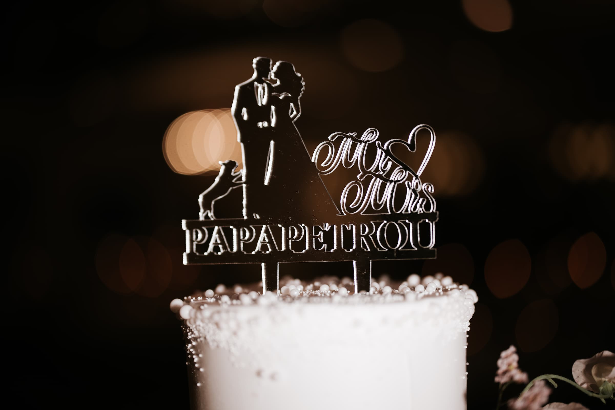 Instead of a guest book, Alana and Paul had their guests sign vinyl records of two of their favorite artists. In addition to Jordan almond favors, they also had Yanni’s Biscuit Bar featuring take-home bags with Yanni’s picture on it and dog treats that had Yanni’s name on them. They capped off the night with a pretzel bar for guests to grab on their way out.