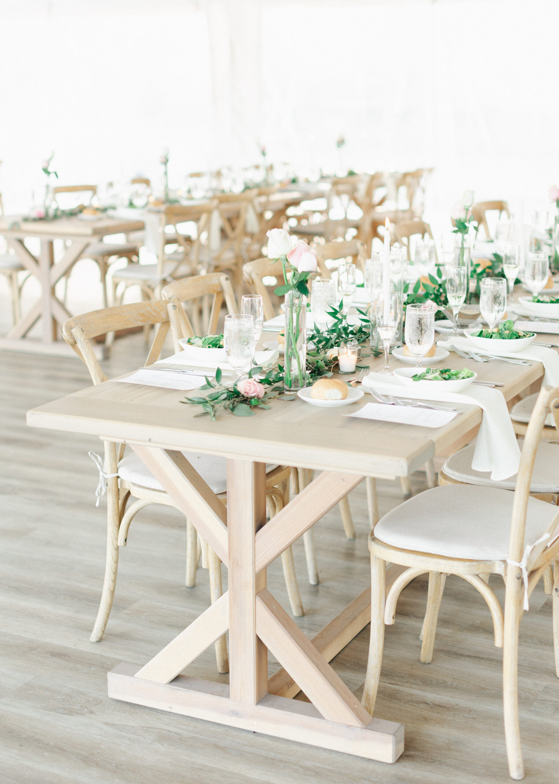 From the gorgeous light wood flooring to the lush greenery trailing down the center of each table, it was a magical setting for guests to dine.