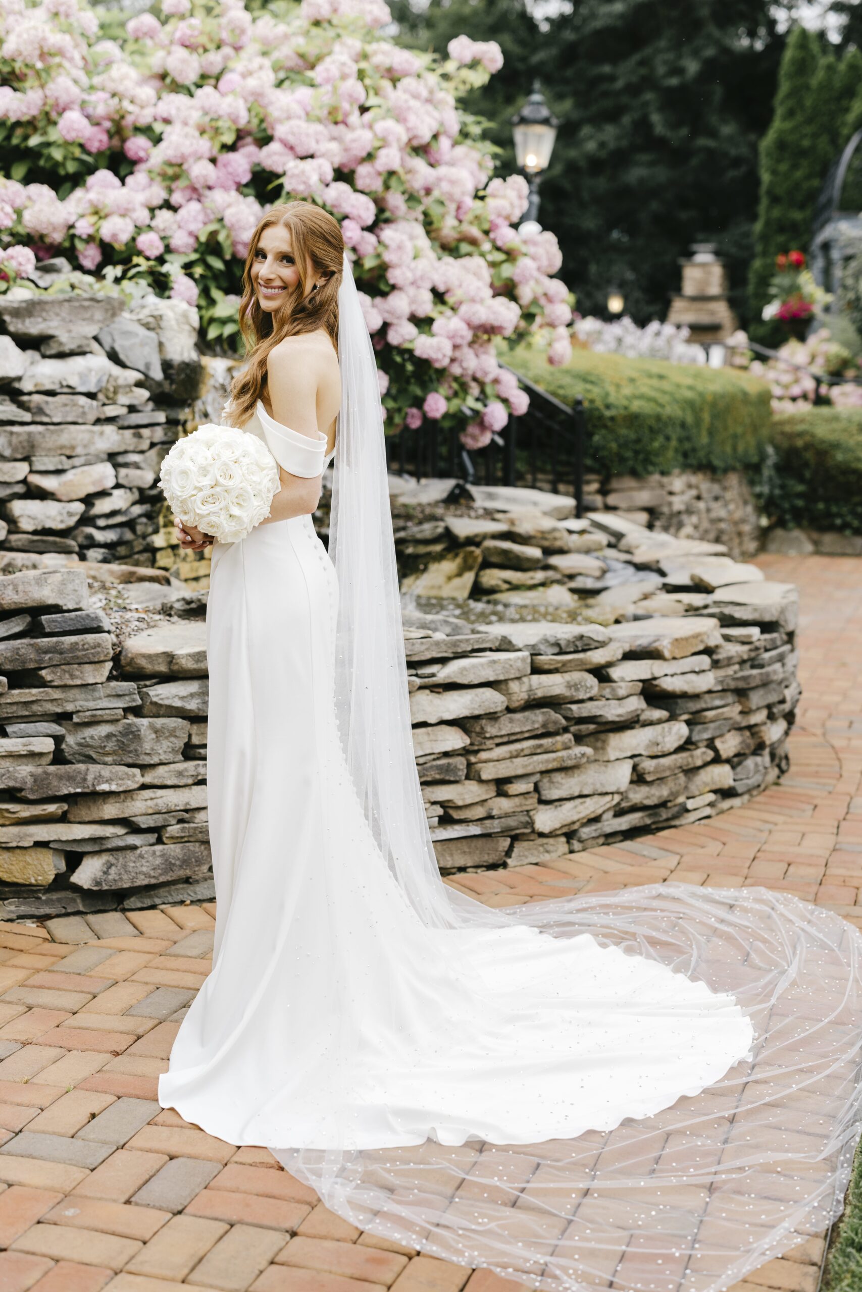 Following the ceremony, the all-white theme continued at the reception, with crisp linens, lush floral arrangements by Crest Florist, and candlelit tables that created a sophisticated ambiance.