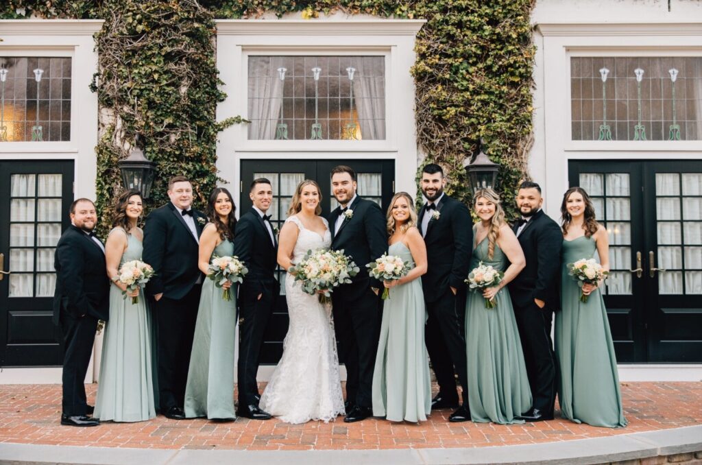 “Our color scheme transferred over to our bridal party dresses with the girls wearing shades of sage green.”