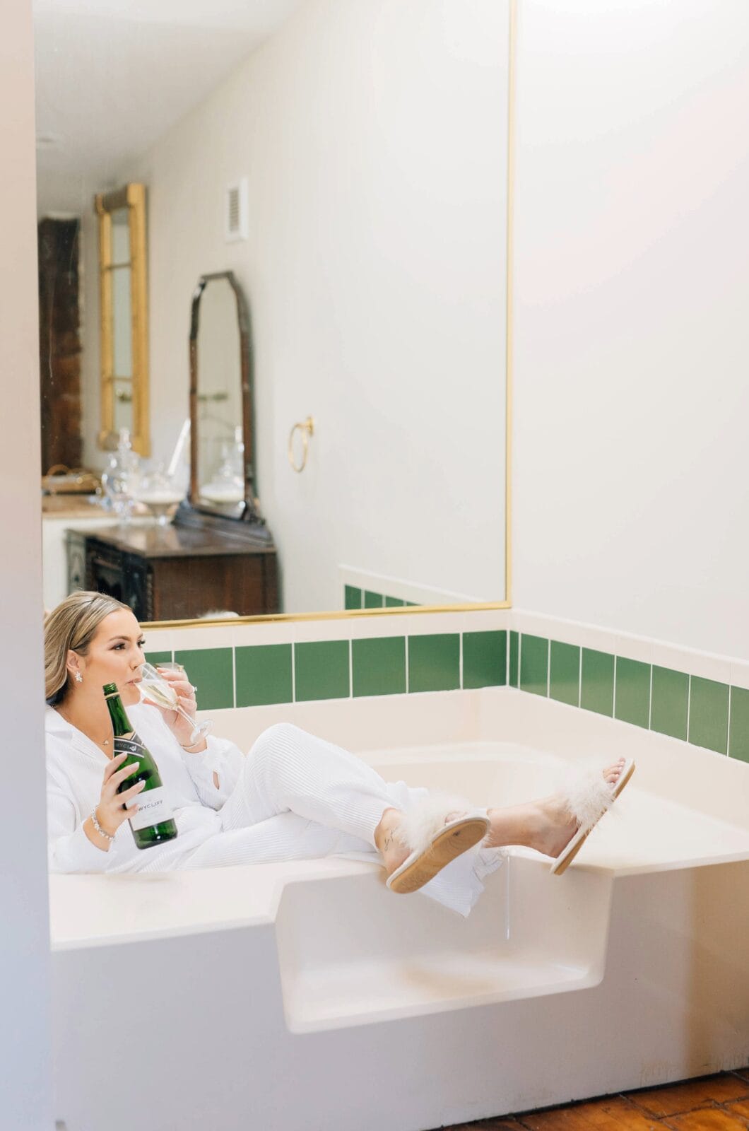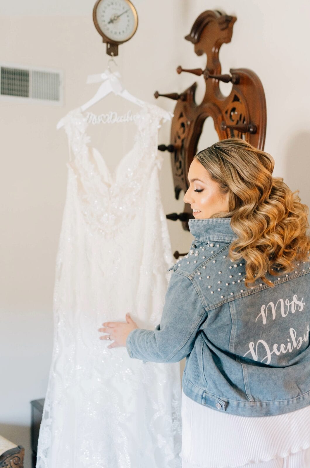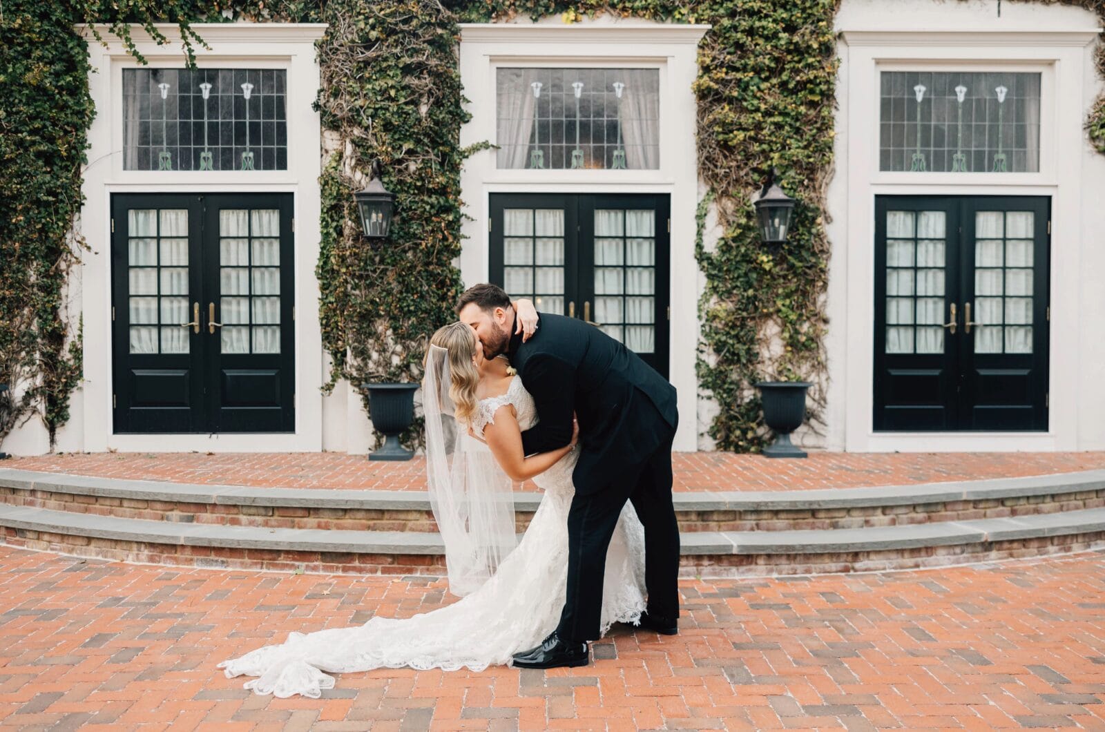 “From the wooden floors, antique bar from the 1700s, and ivy covered outdoor wall, this space is an absolute gem,” says the bride.