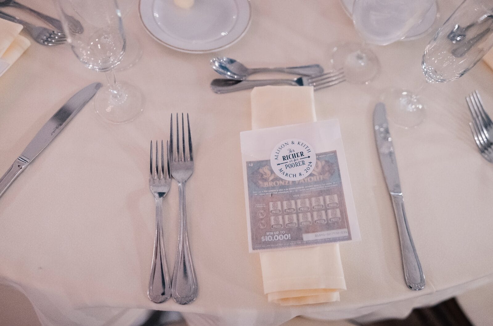 Guests took home a cute package that held scratch off tickets. Sealed with a sticker that said “for richer or for poorer.”