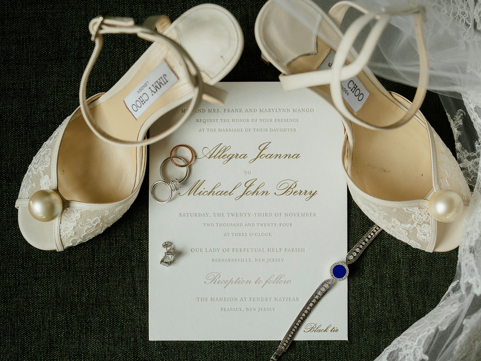 For their ceremony, Allegra and Mike chose Our Lady of Perpetual Help in Bernardsville, a historic church known for its grand stained-glass windows, soaring wooden beams, and warm, intimate ambiance. Its timeless architecture and serene surroundings made it the perfect place for them to exchange their lifelong promises. Just a short drive from Natirar, the setting seamlessly blended tradition and elegance, setting the tone for a truly unforgettable day.