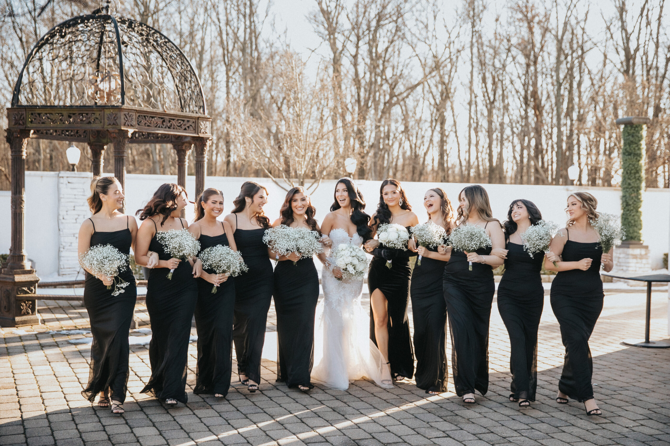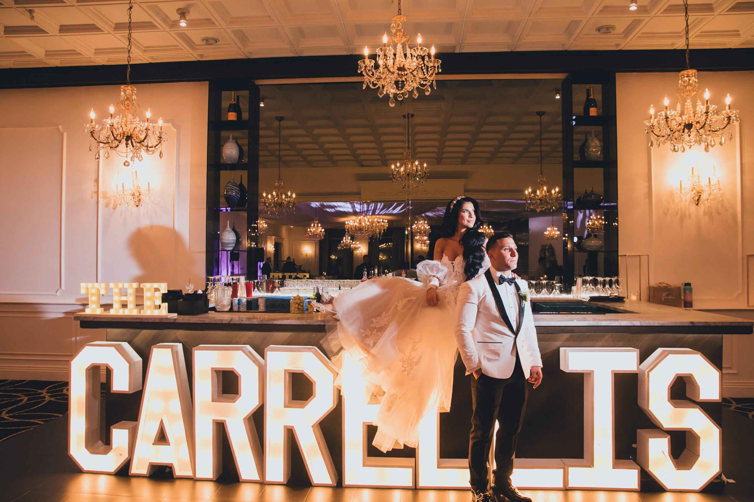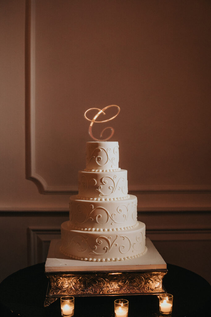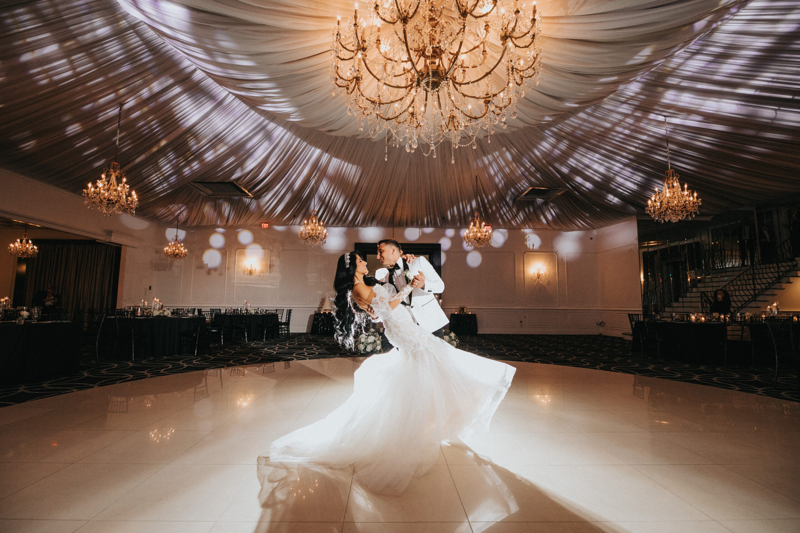 Their elegant wedding day vibe was punctuated with a black and white aesthetic. They were going for a very “classic and modern romantic” look with baby’s breath and candles incorporated throughout the decor.