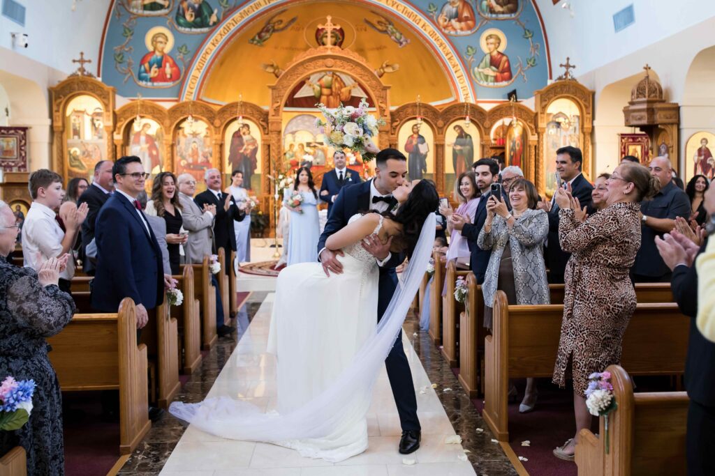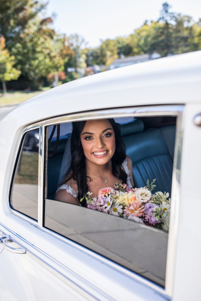 “Our favorite moment was the ride to the reception venue after getting married in our church,” says Angelina. “We had rented a vintage Rolls Royce to drive us privately to the venue from the church.”