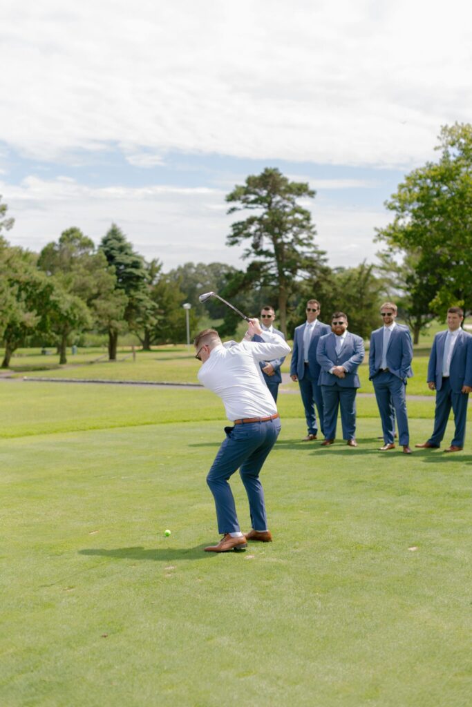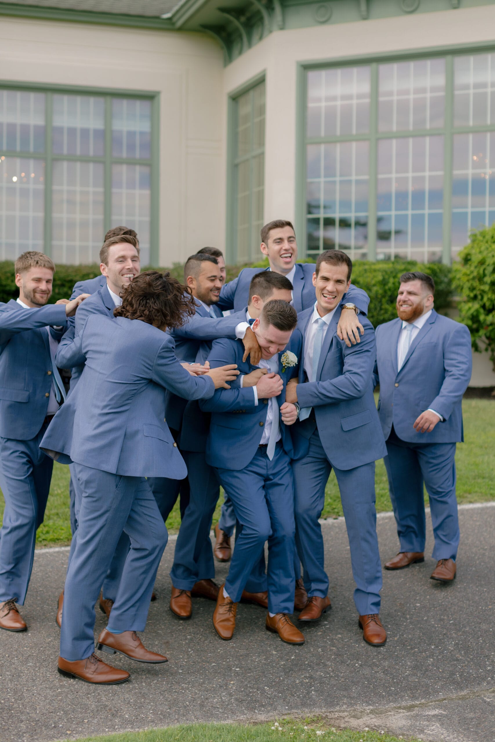 Ryan’s groomsmen rented from The Black Tux to closely match his custom suit.