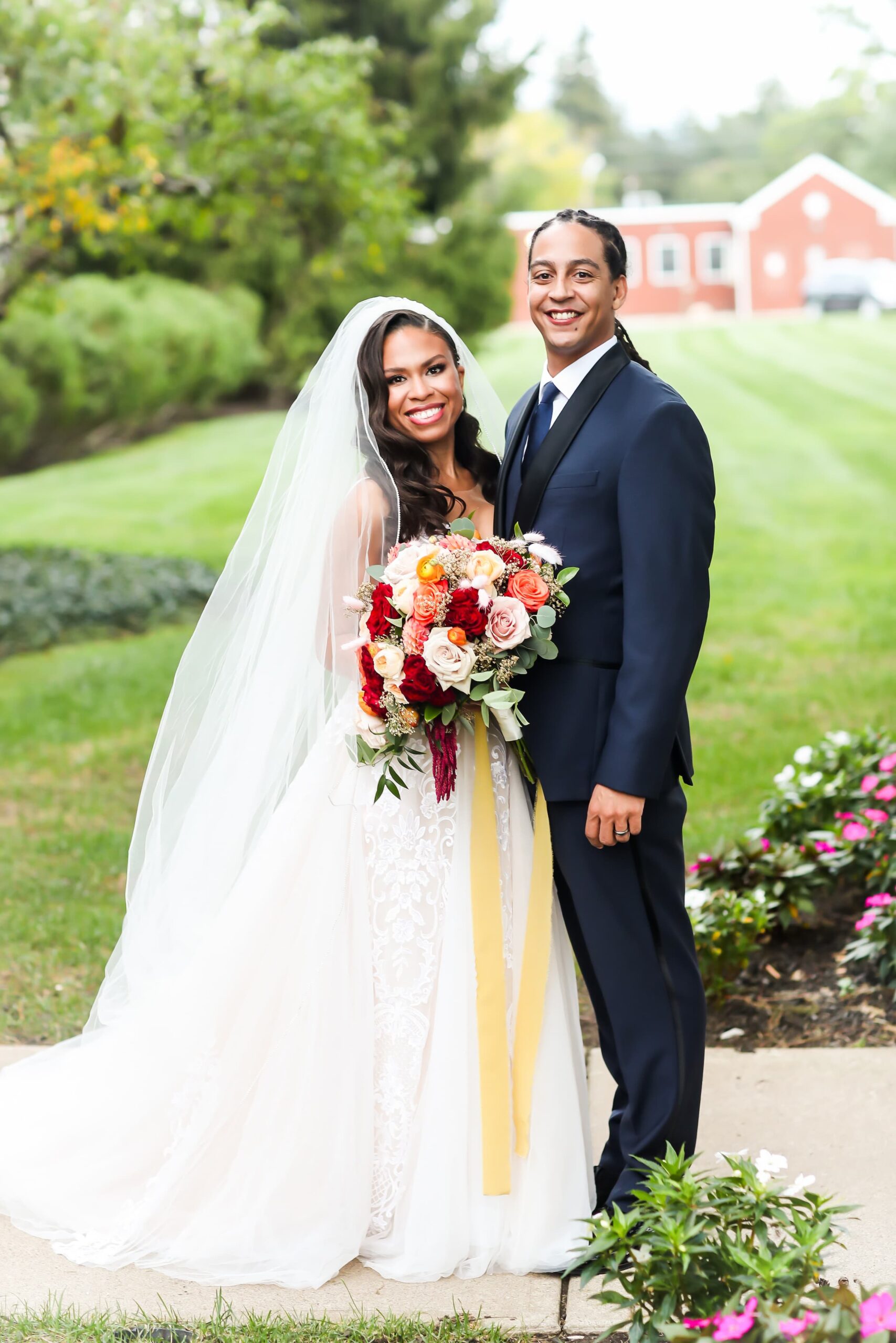With R&B music playing in the background, “we locked eyes,” Arielle remembers. “And I have to say it was truly love at first sight.” They exchanged numbers and saw each other a few times that week—and then continued after returning to their everyday lives: Evan to Boston, where he was in software sales, and Arielle to NYC where she was working as a producer on her path to becoming a news anchor and political correspondent. After a two-year long-distance relationship, Evan made the move to Brooklyn.