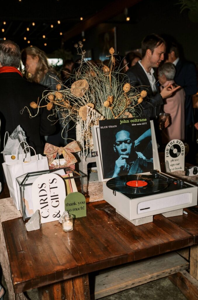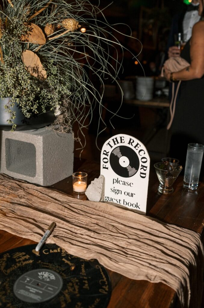 “We added personal touches that reflected our love of music, including a record-style guest book where guests signed vinyls featuring some of our favorite musicians, albums and songs.”