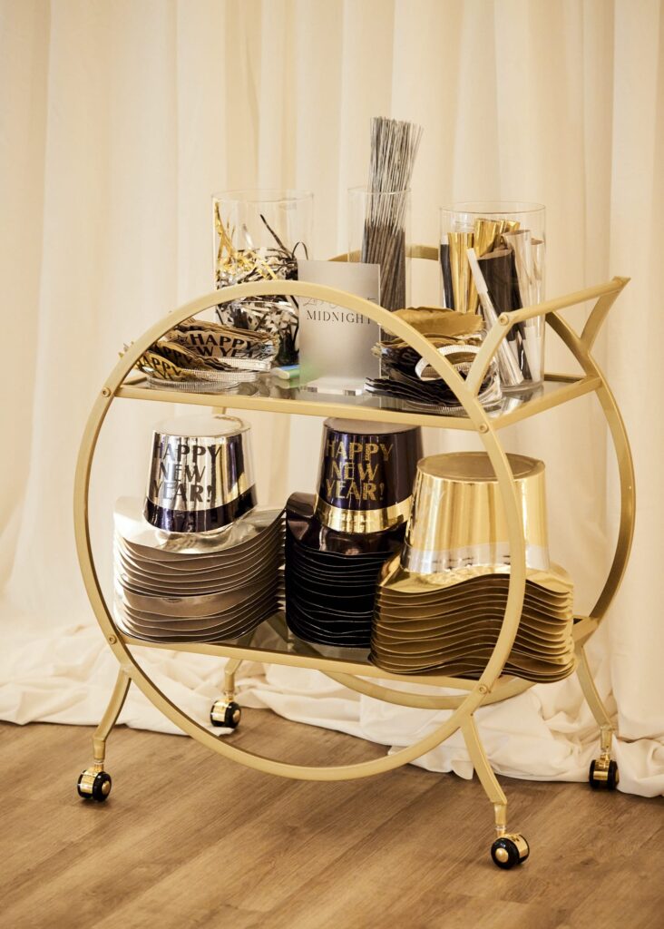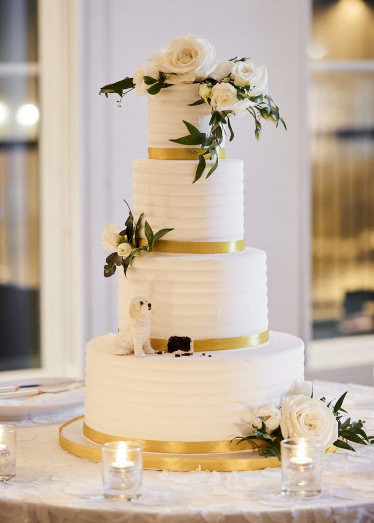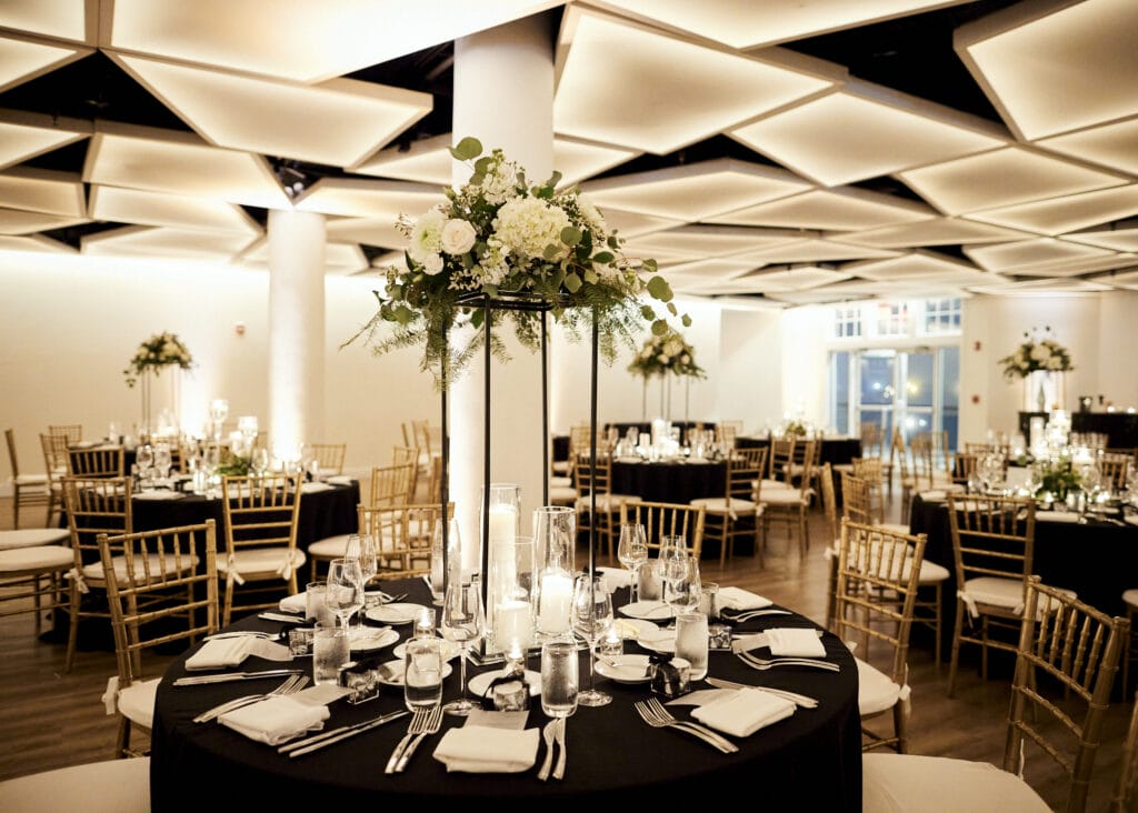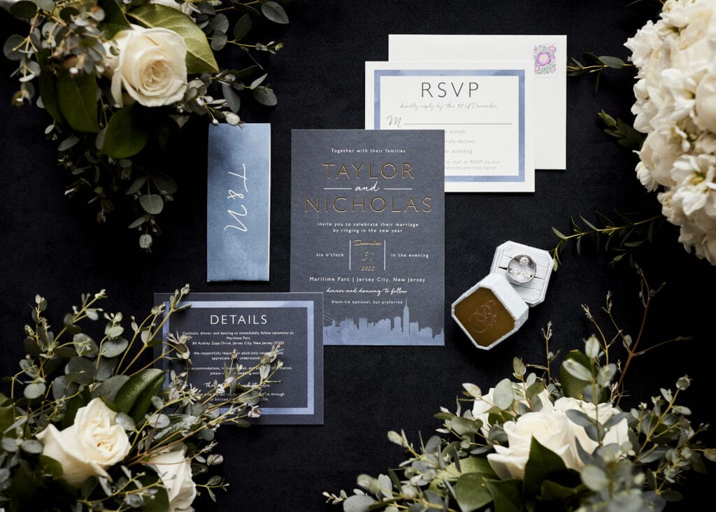 For their New Year’s Eve wedding, the couple went modern, rustic and chic with lots of black, white and gold. “I have a very clean, classic and chic style, so everything about this wedding checks the boxes,” Taylor says. “I am also definitely known for being a little ‘bougie’ and wanting to have a good time (Nick too!) So I don’t know what screams ‘bougie’ and party more than an NYE wedding on the Hudson!”