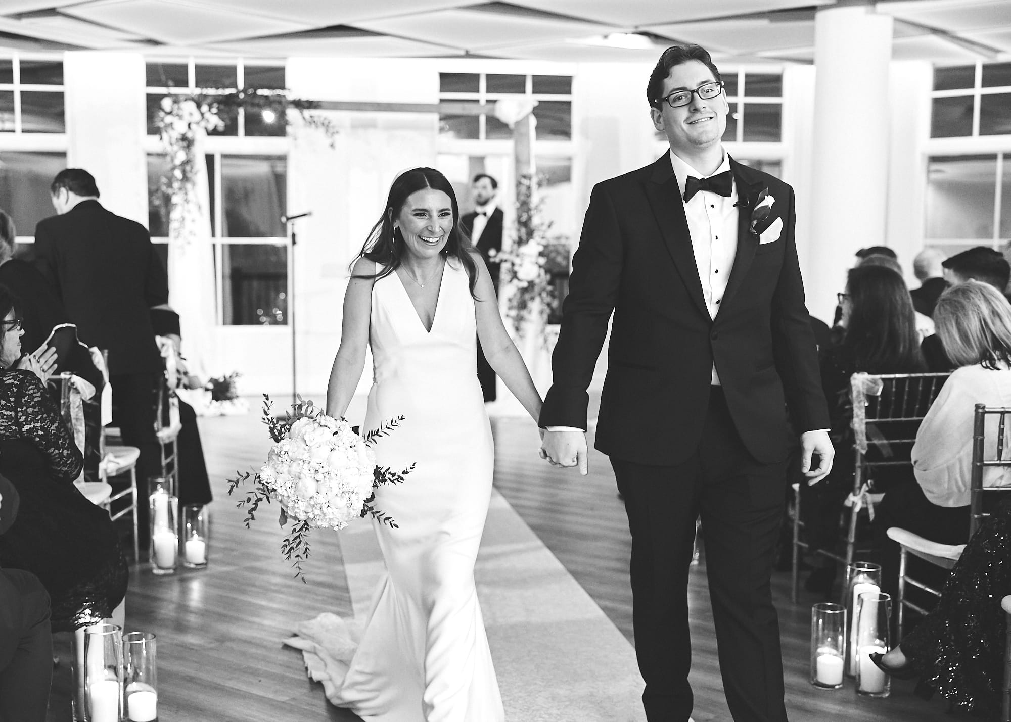 For their New Year’s Eve wedding, the couple went modern, rustic and chic with lots of black, white and gold. “I have a very clean, classic and chic style, so everything about this wedding checks the boxes,” Taylor says. “I am also definitely known for being a little ‘bougie’ and wanting to have a good time (Nick too!) So I don’t know what screams ‘bougie’ and party more than an NYE wedding on the Hudson!”