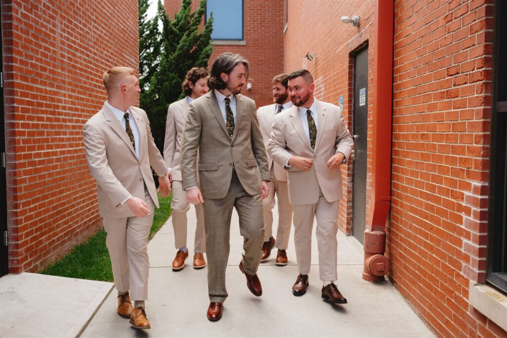 Connor wanted a linen-blend suit in just the right shade of green, something lightweight for summer but polished enough that it wouldn’t wrinkle. “He also worked with Giana, and she brought his idea to life perfectly,” says Brittany. “His suit turned out exactly as he had pictured.”