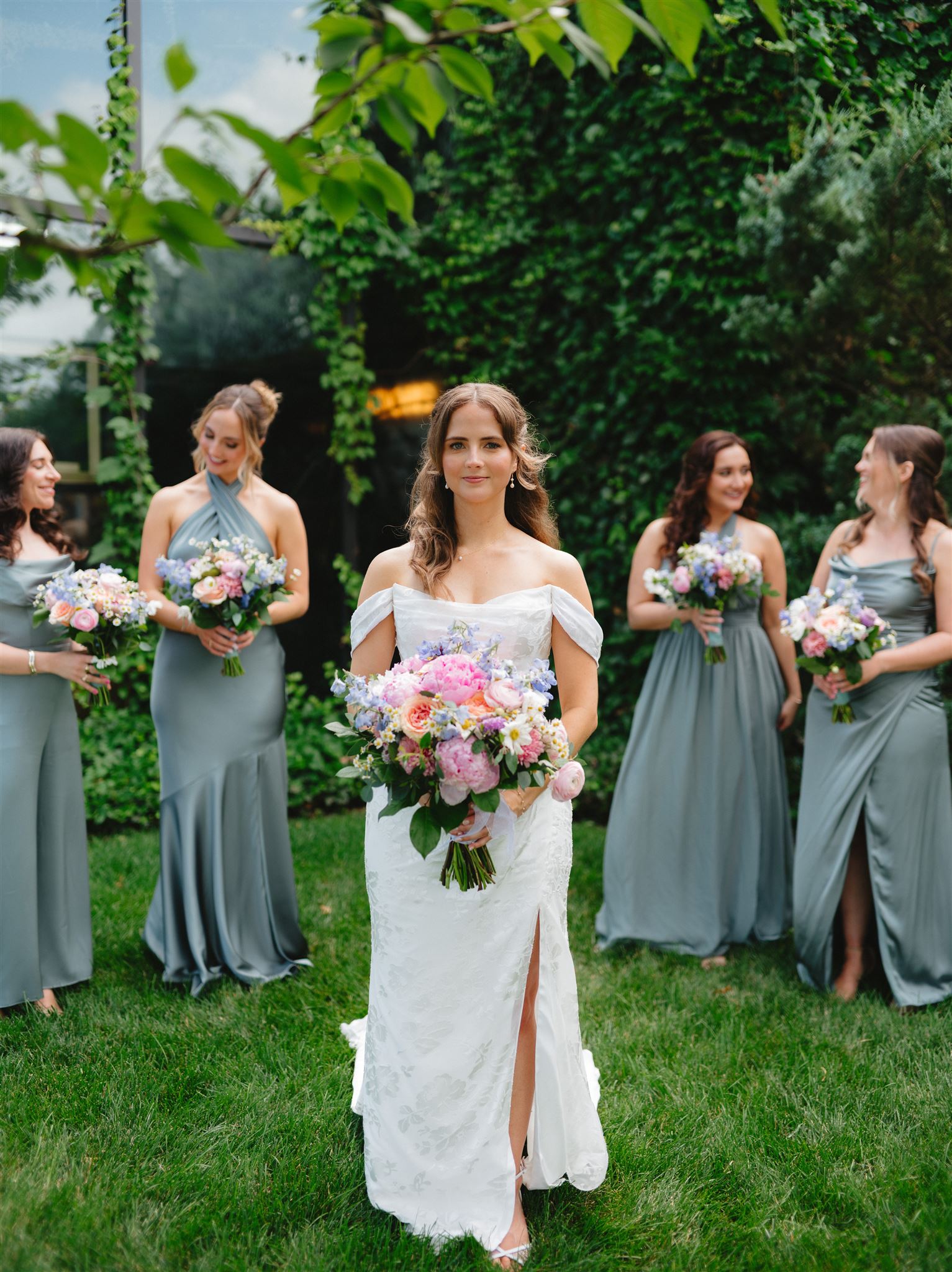 The bridesmaids wore seaglass dresses from Birdy Grey.
