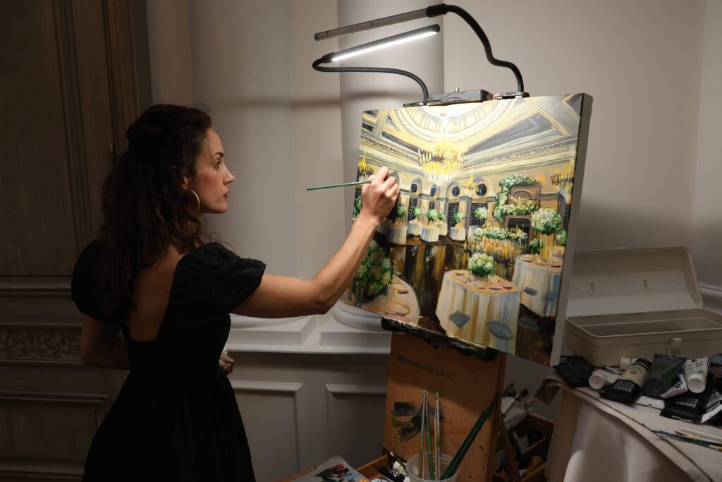 They had a saxophonist, Sax Man Art, who was “so much fun and engaging with everybody,” says Caitlin. There was a live painter who created a portrait of Caitlin and Angelo during their first dance and also sketched portraits of guests throughout the night. When it was time for dessert, Carrello di Cannoli, better known as the Cannoli Guy, made his way onto the dance floor. “He gets right out there and makes cannolis for people and he is dancing around and it’s just high energy the whole time,” says Caitlin.