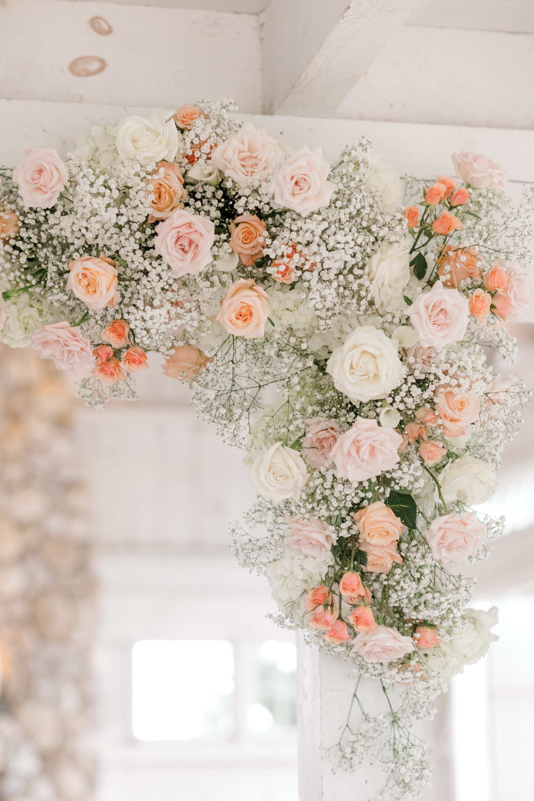 Their theme was coastal, vintage and romantic. The color palette focused on antique white, black, shades of tan, hints of pink and colors inspired by the ocean.