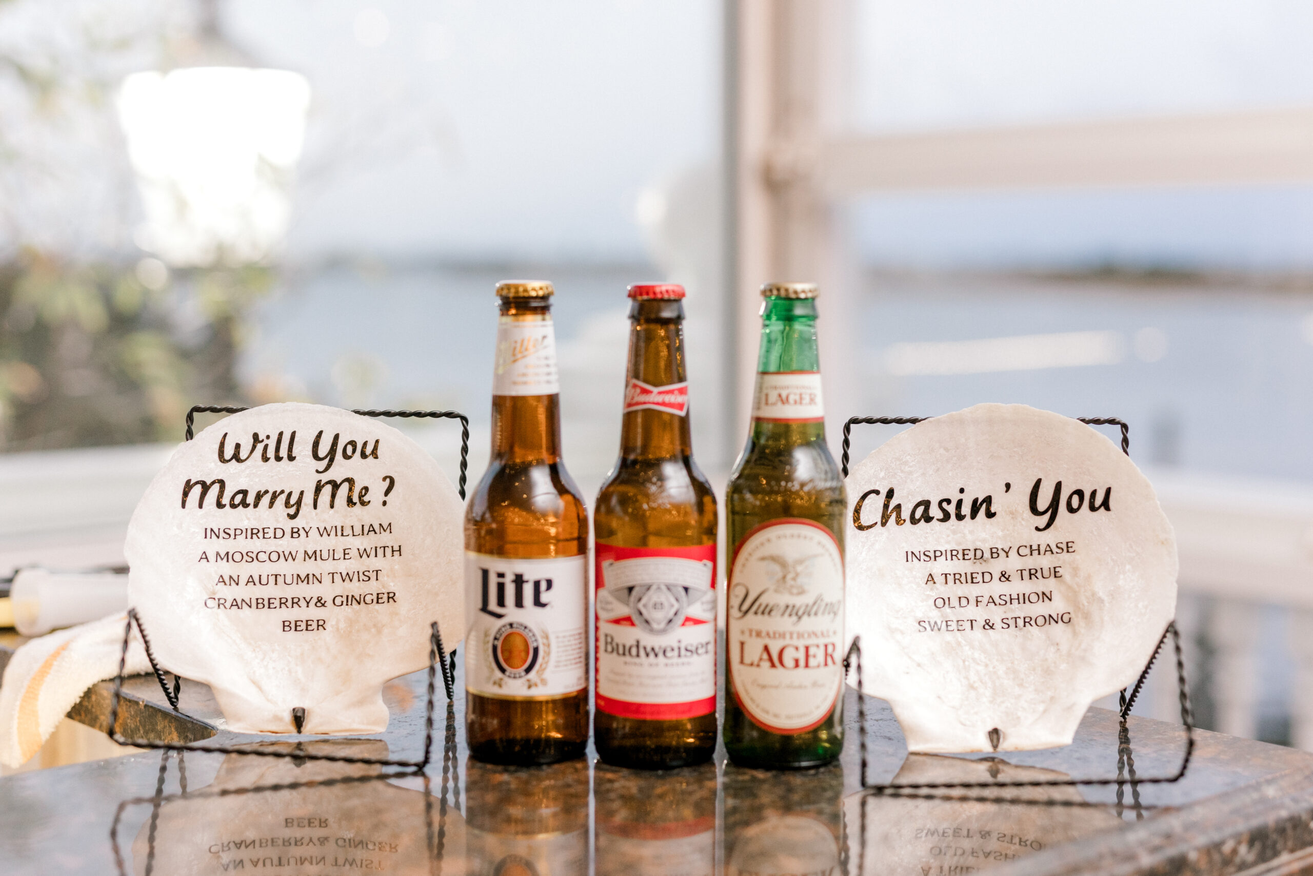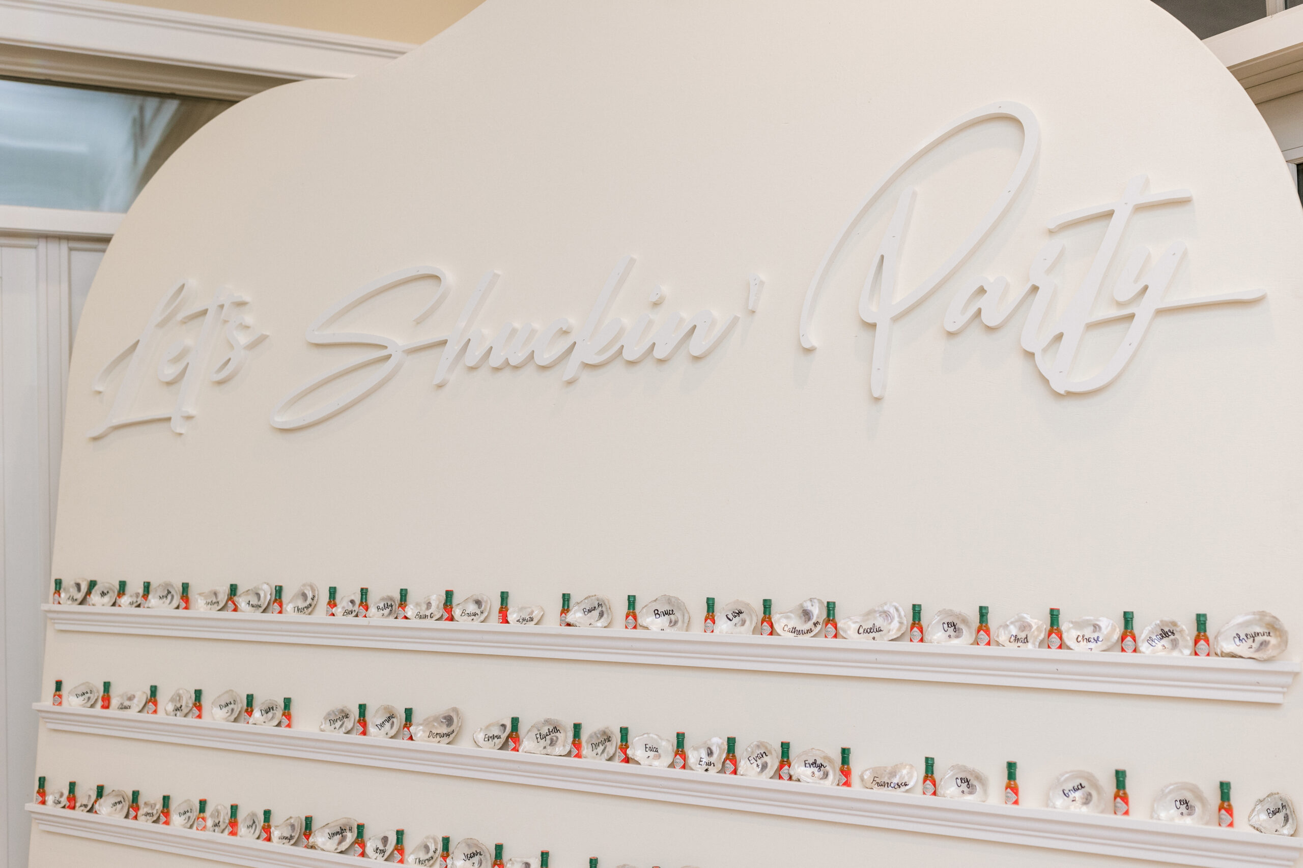 The seating chart featured hand painted oysters from Maryland accompanied with a tobacco shooter, and antique oyster cans made for a true oyster lover aesthetic.