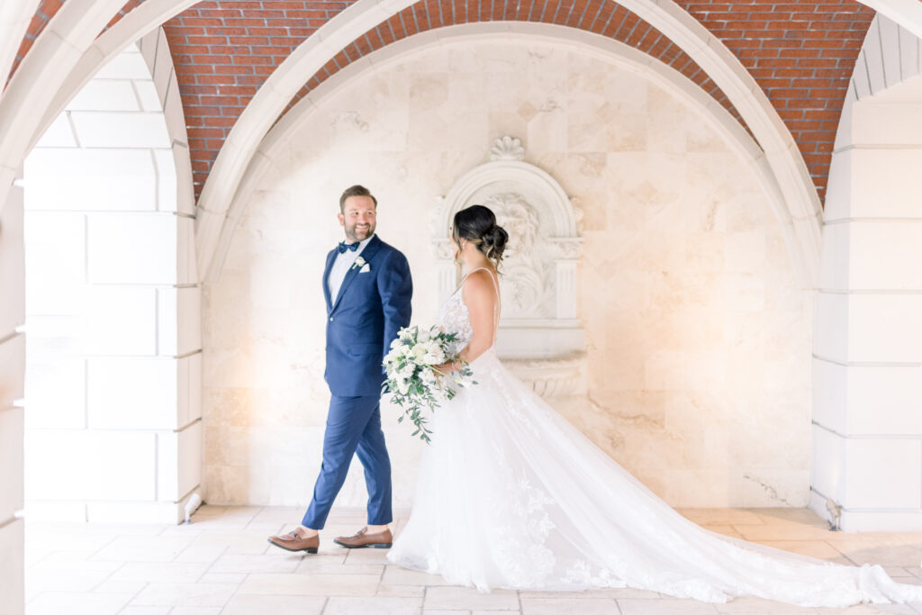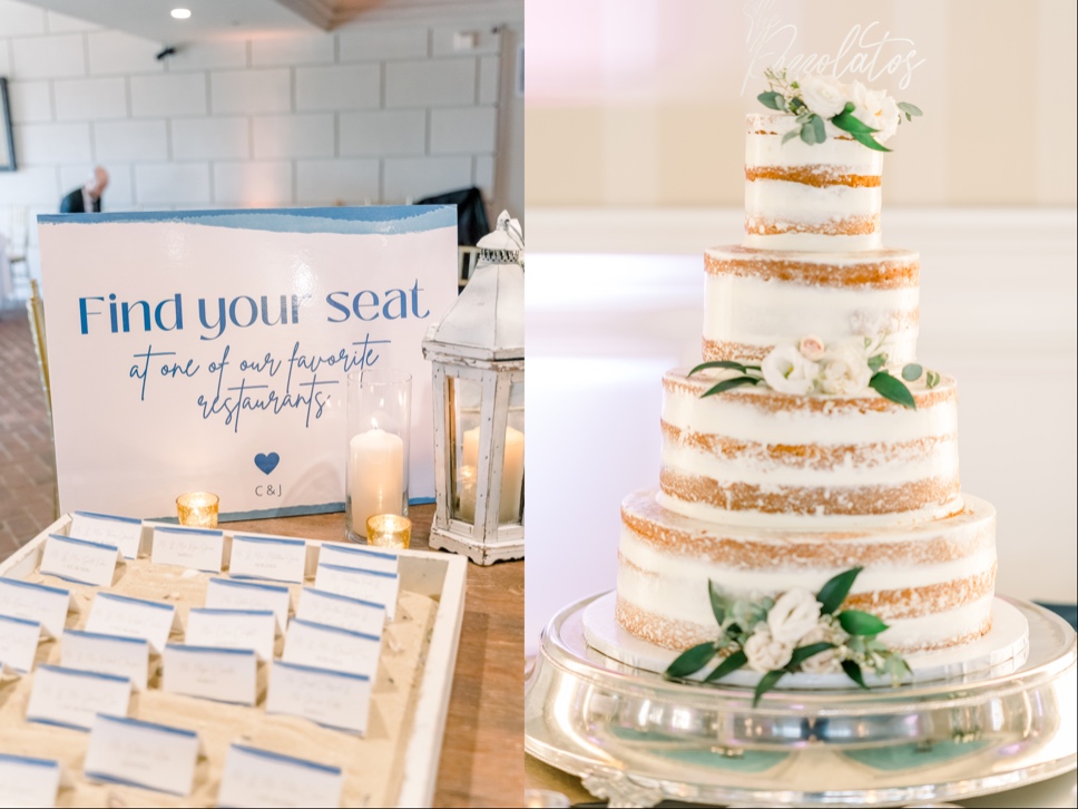 “The venue itself is incredible from top to bottom. Keeping that in mind, we wanted to simply accentuate some details and really make it unique to us. We both love the color navy and that felt fitting being on the water so we tried to incorporate that through linens, the bridesmaid dresses, the groomsmen’s ties/pocket squares, and Joe’s tux,” says Chelsea. The couple chose “Conversations in the Dark” by John Legend as their our first dance song.