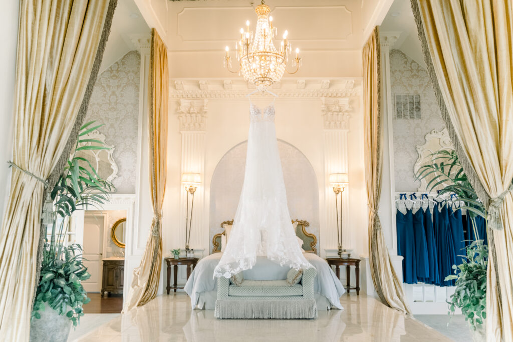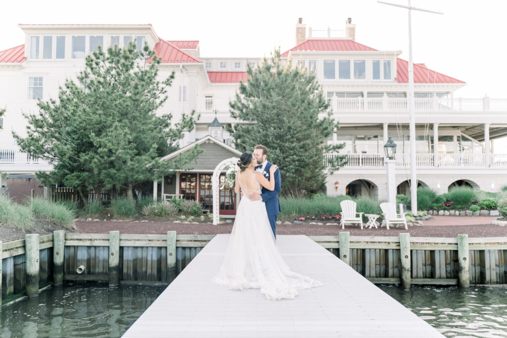 During their search, the couple had narrowed it down to a few venues that were either vineyards or waterfront. On their second weekend of venue tours, they hit Hotel LBI, Bonnet Island, and Mallard Island (all owned by the same company). “Joe had originally not wanted to check out Mallard because he disliked the red roof, but when we walked in, we knew it was where we were going to get married,” says Chelsea. “Between the waterside chapel, the abundance of outdoor space, the elevated ceilings on the dance floor, the onsite accommodations for our bridal party, and the absolutely insane bridal suite, there was nothing else like it.” Besides the venue itself being incredible, they also fell head over heels for the coordinator, Gianna Verdoni.