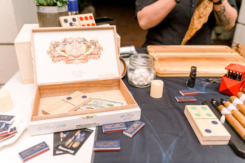 Pizza time “With our new last name as Pizzolato (and Joe being called ‘Pizza’ for years), we really leaned into that,” says Chelsea. “Joe had a pizza fabric sewn into his jacket. We had late night pizza served at the venue for the after party alongside espresso martinis and a cigar roller.”