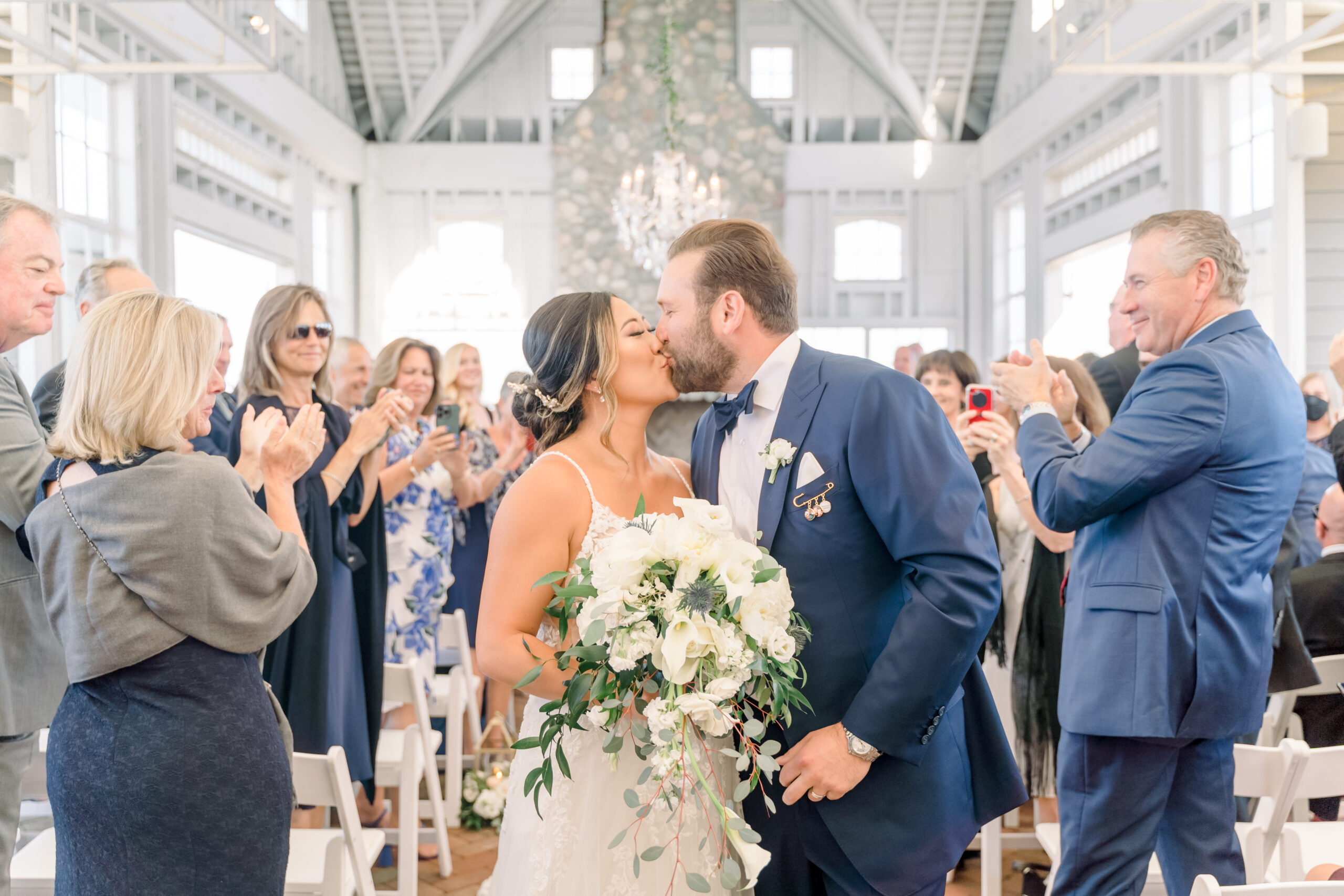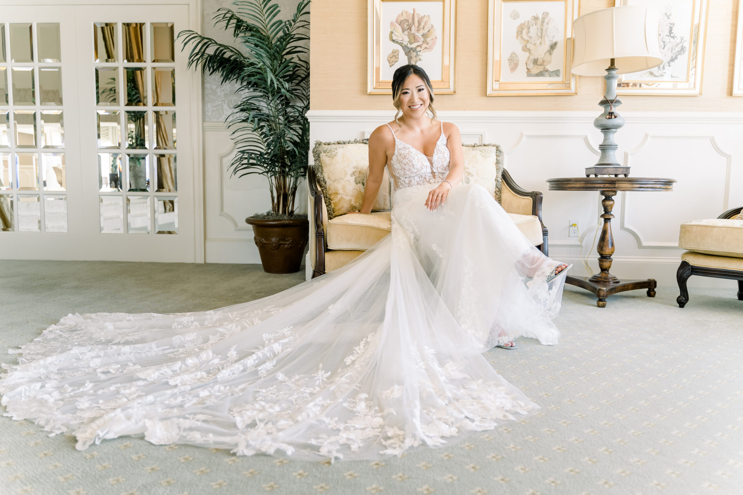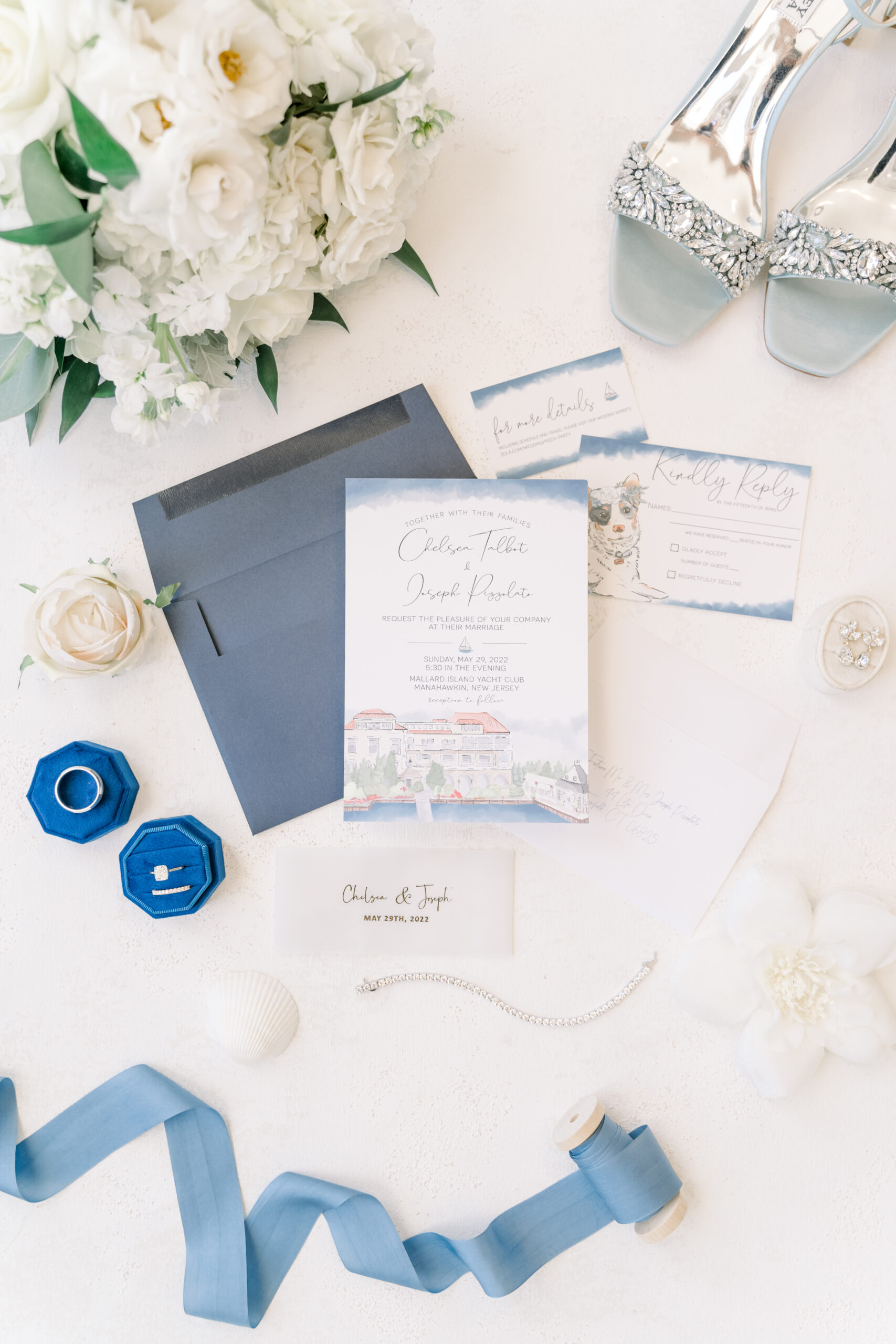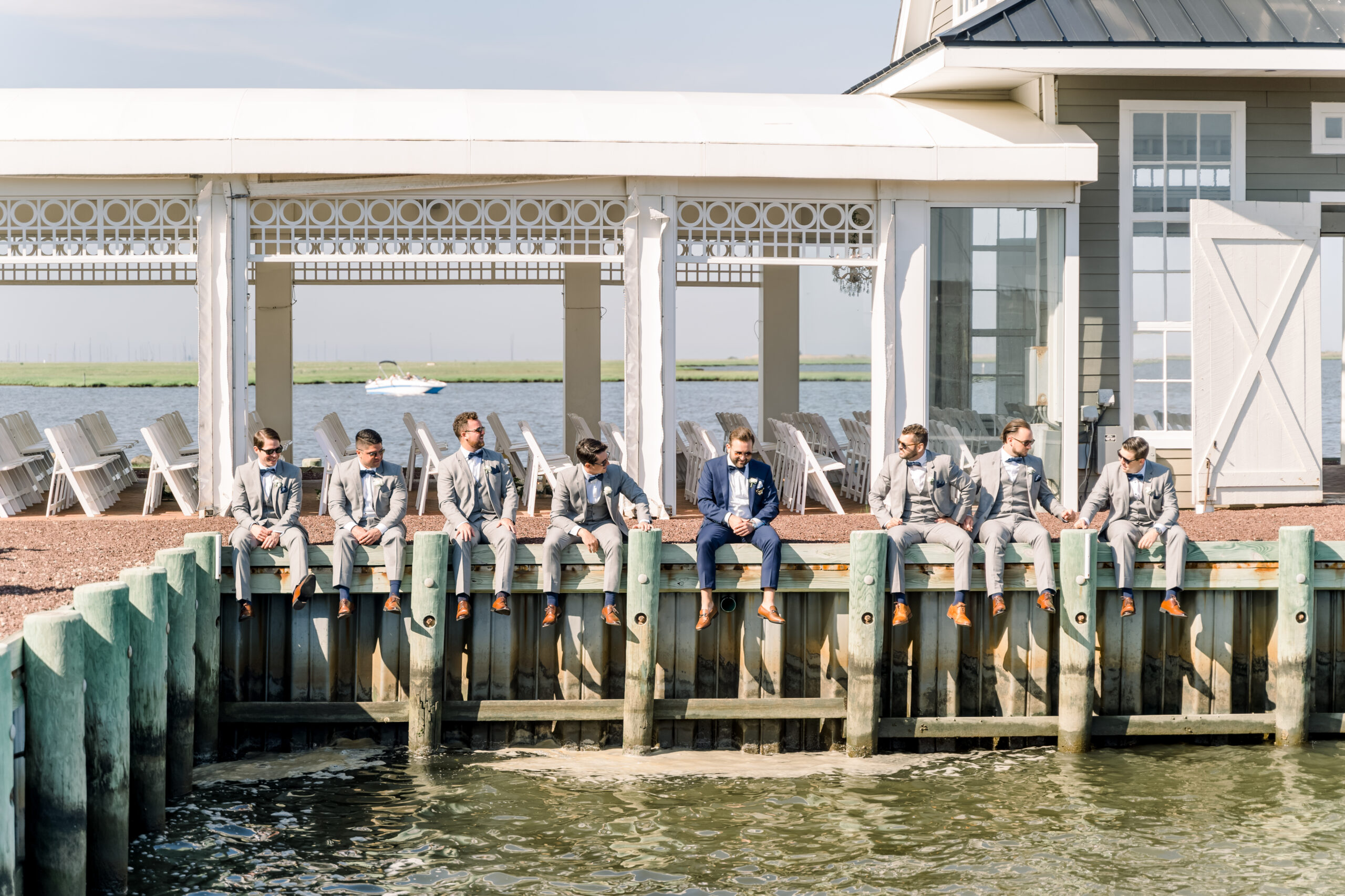 During their search, the couple had narrowed it down to a few venues that were either vineyards or waterfront. On their second weekend of venue tours, they hit Hotel LBI, Bonnet Island, and Mallard Island (all owned by the same company). “Joe had originally not wanted to check out Mallard because he disliked the red roof, but when we walked in, we knew it was where we were going to get married,” says Chelsea. “Between the waterside chapel, the abundance of outdoor space, the elevated ceilings on the dance floor, the onsite accommodations for our bridal party, and the absolutely insane bridal suite, there was nothing else like it.” Besides the venue itself being incredible, they also fell head over heels for the coordinator, Gianna Verdoni.