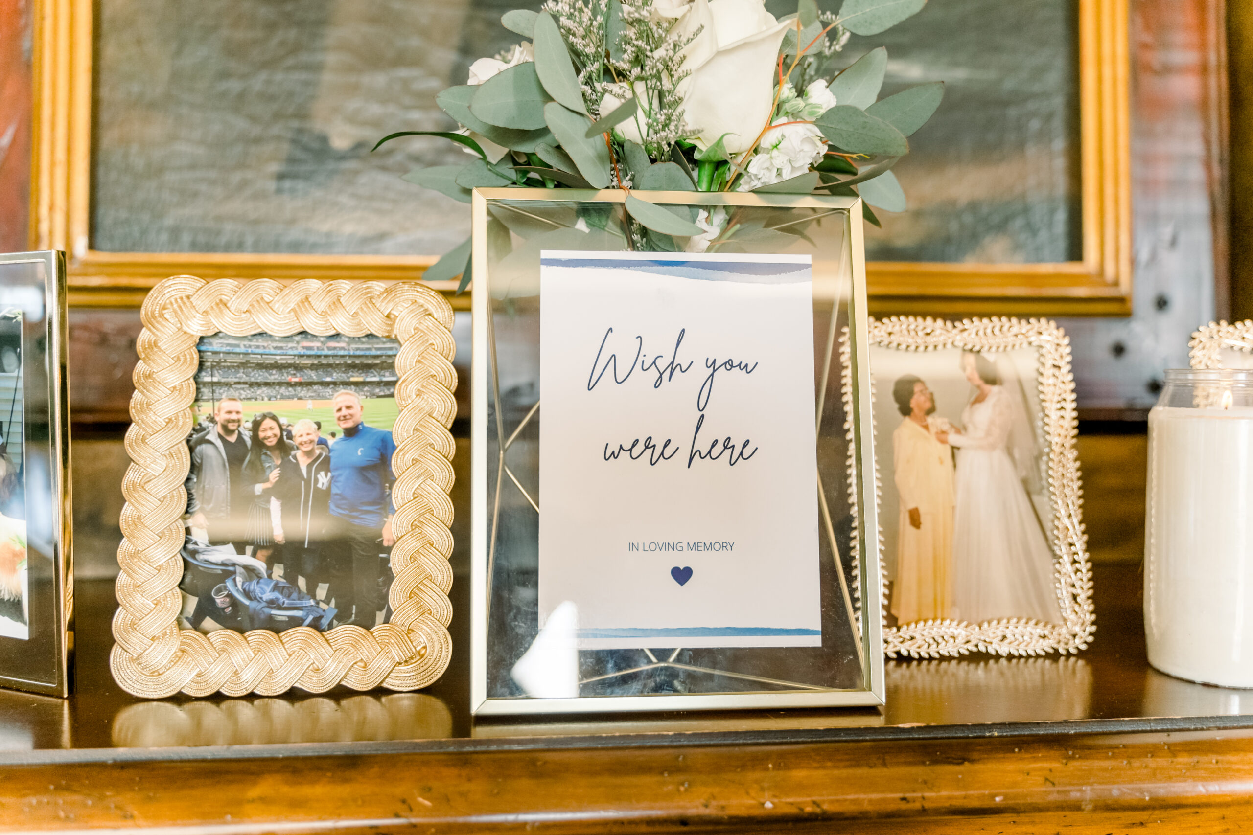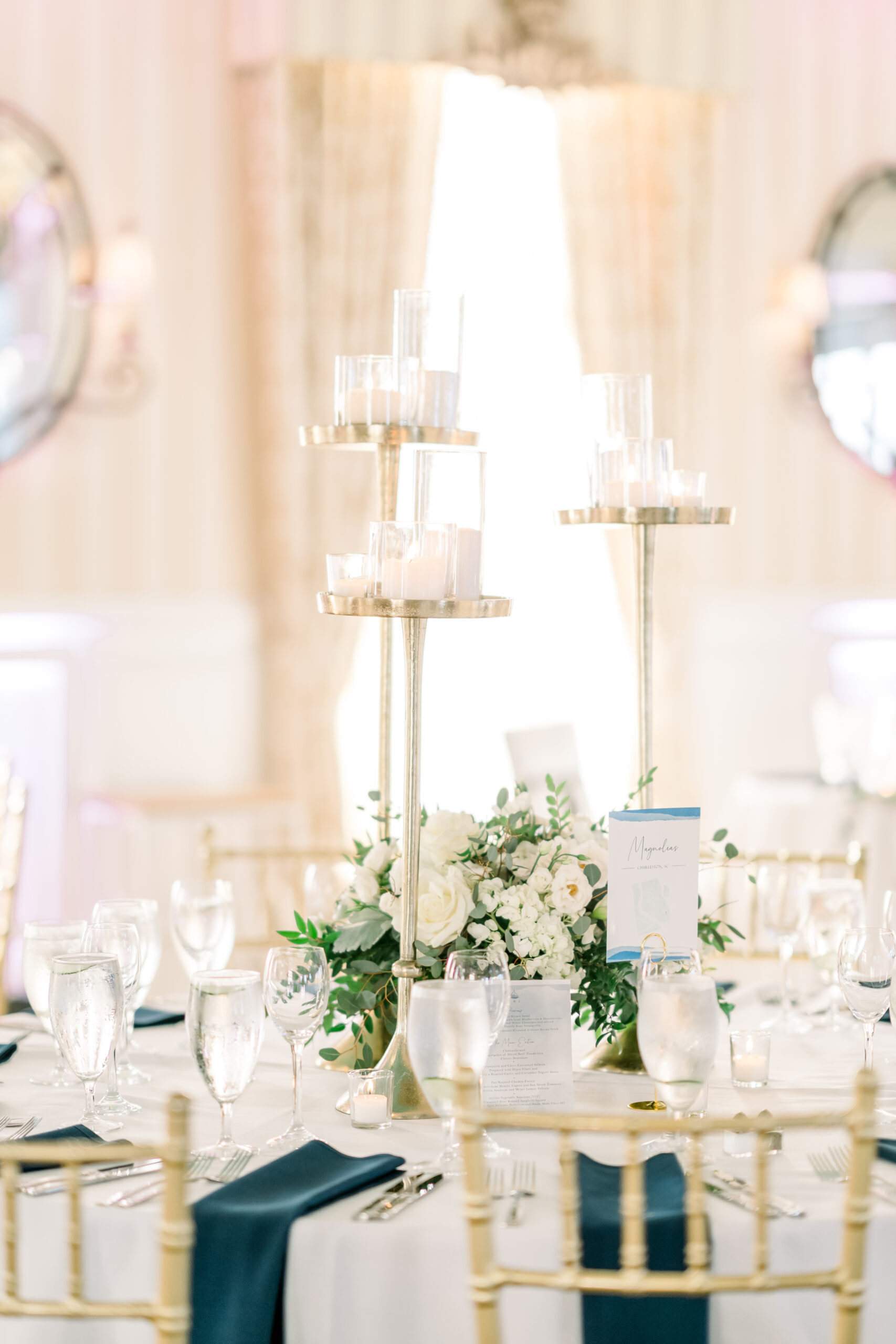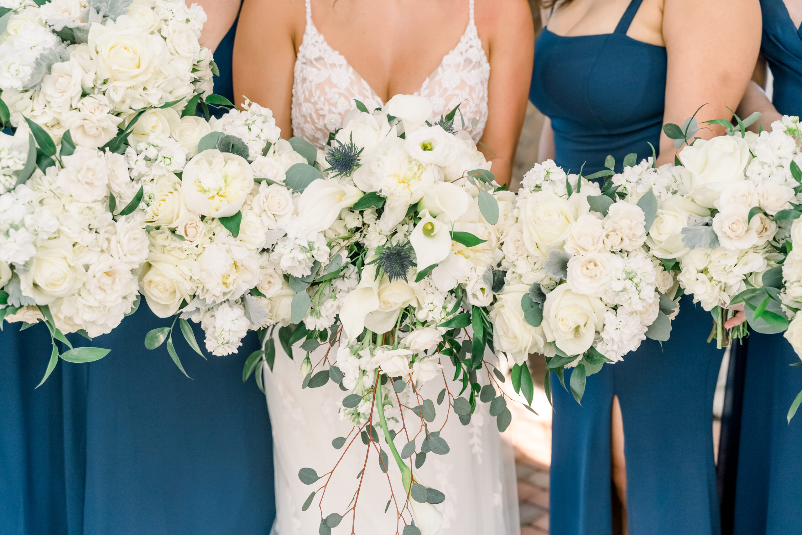 “The venue itself is incredible from top to bottom. Keeping that in mind, we wanted to simply accentuate some details and really make it unique to us. We both love the color navy and that felt fitting being on the water so we tried to incorporate that through linens, the bridesmaid dresses, the groomsmen’s ties/pocket squares, and Joe’s tux,” says Chelsea. The couple chose “Conversations in the Dark” by John Legend as their our first dance song.