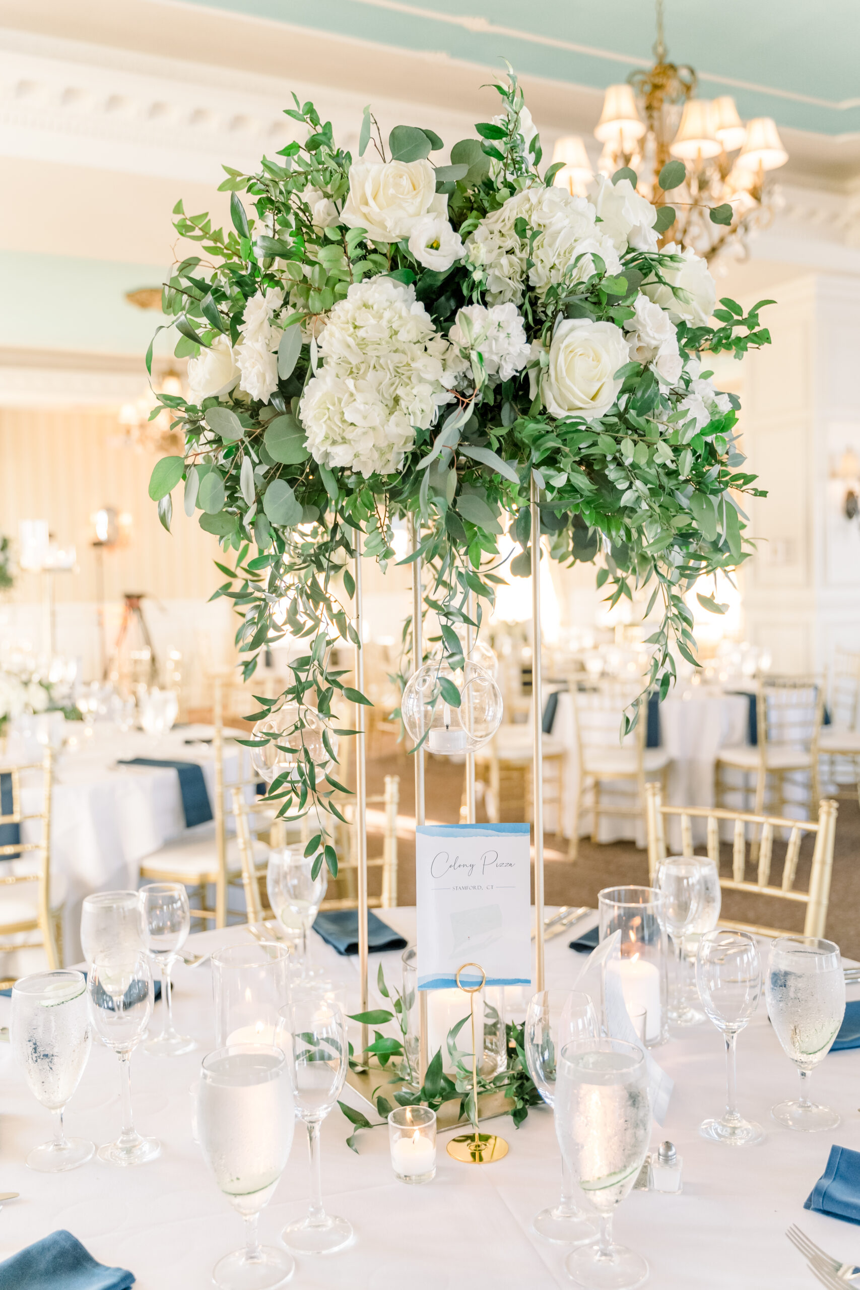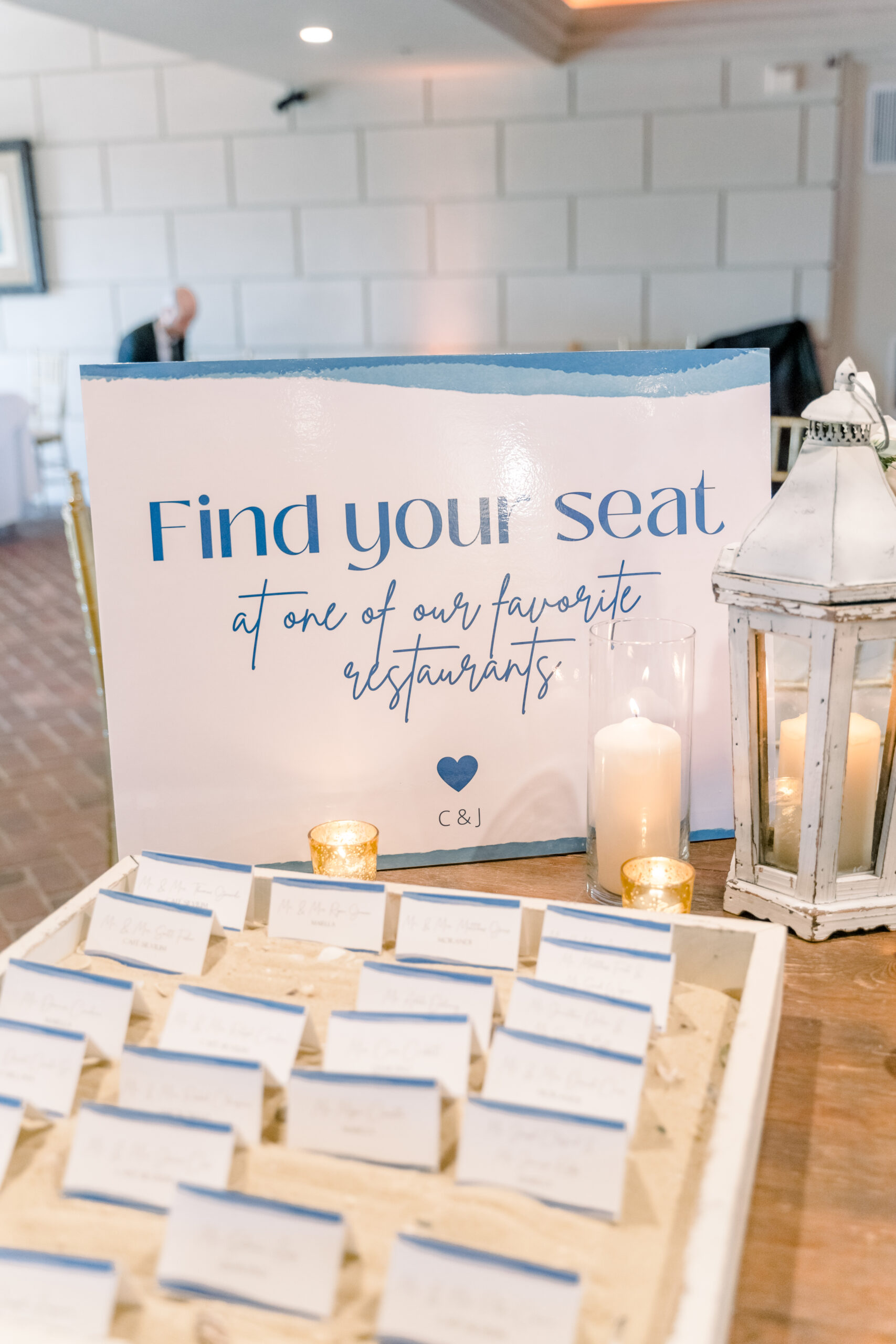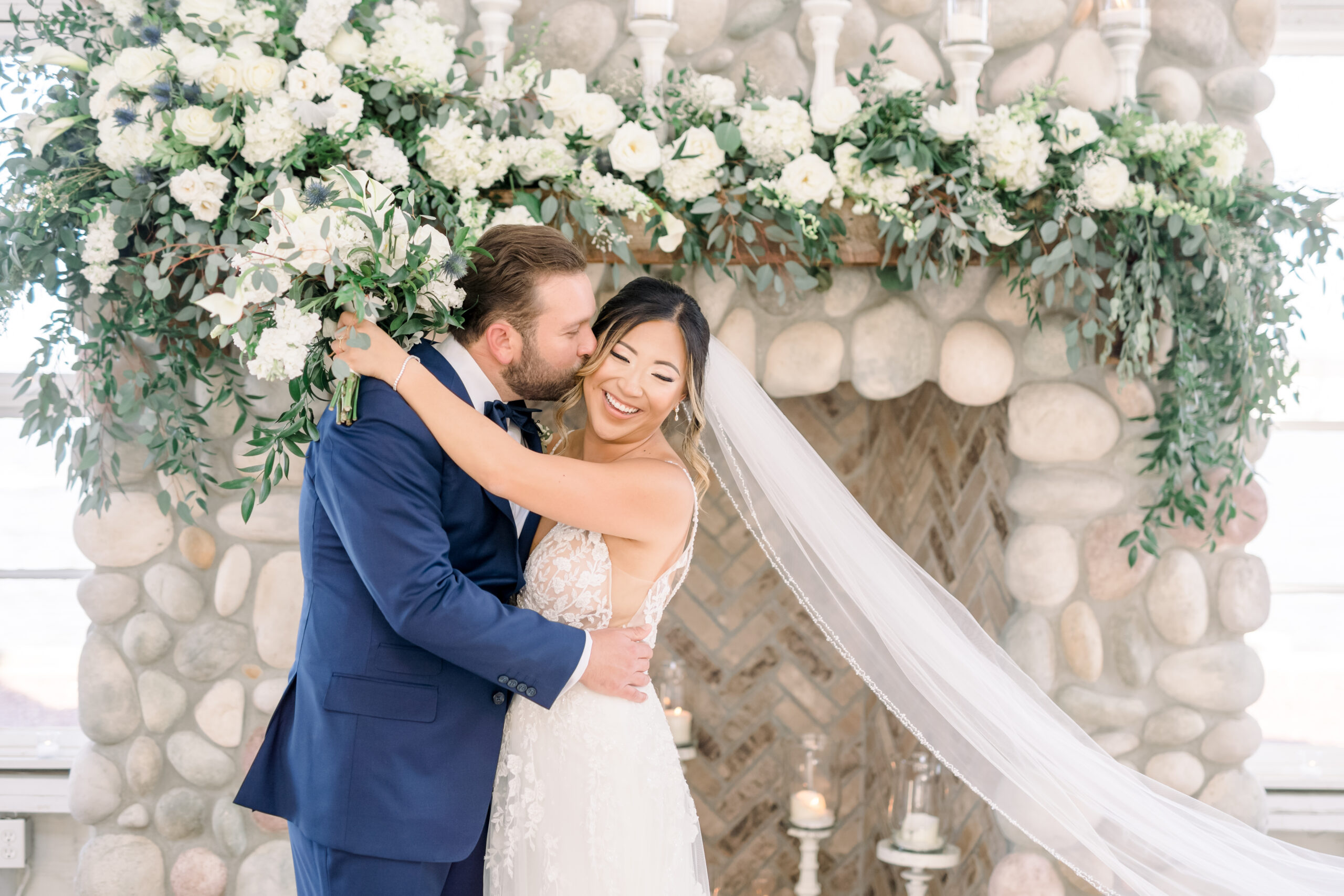 “The venue itself is incredible from top to bottom. Keeping that in mind, we wanted to simply accentuate some details and really make it unique to us. We both love the color navy and that felt fitting being on the water so we tried to incorporate that through linens, the bridesmaid dresses, the groomsmen’s ties/pocket squares, and Joe’s tux,” says Chelsea. The couple chose “Conversations in the Dark” by John Legend as their our first dance song.