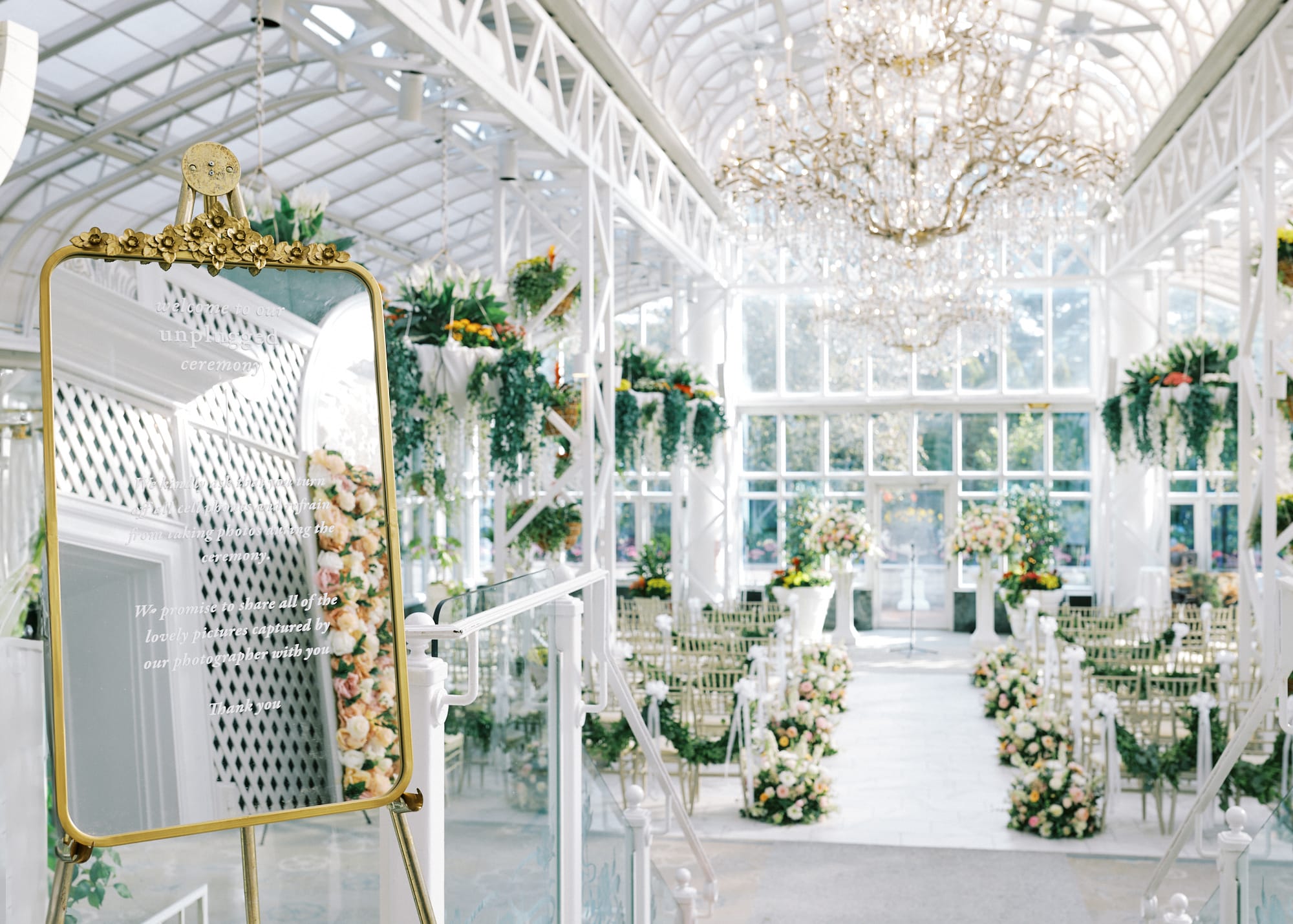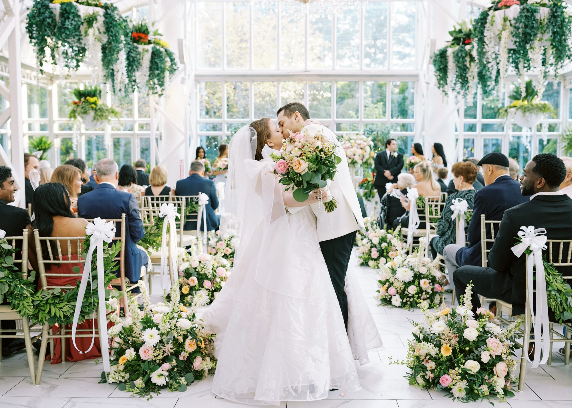 The Conservatory offered a beautiful indoor venue with a greenhouse ambiance. Grace and Colin loved the hanging plants, beautiful lighting, and convenience for their guests.