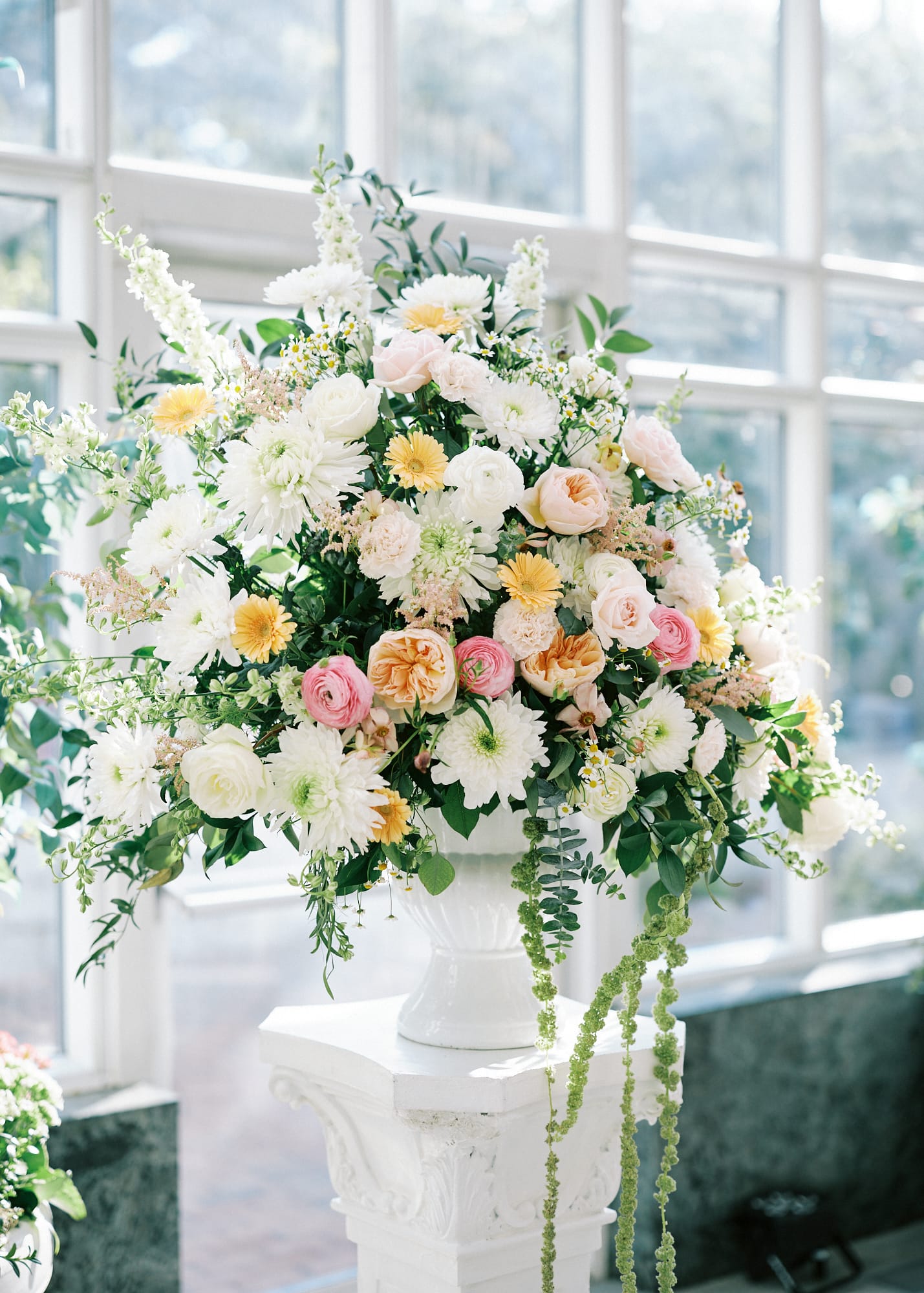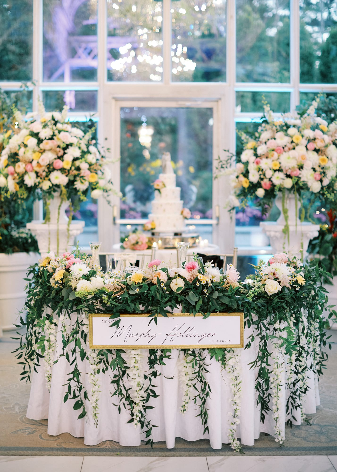 “The Conservatory is a beautiful indoor venue that looks like a greenhouse and it is originally from France,” says Grace. “We like little European and Southern touches here and there. My favorite aspects of the venue are the plants that hang from the pots above. The lighting is also beautiful.”