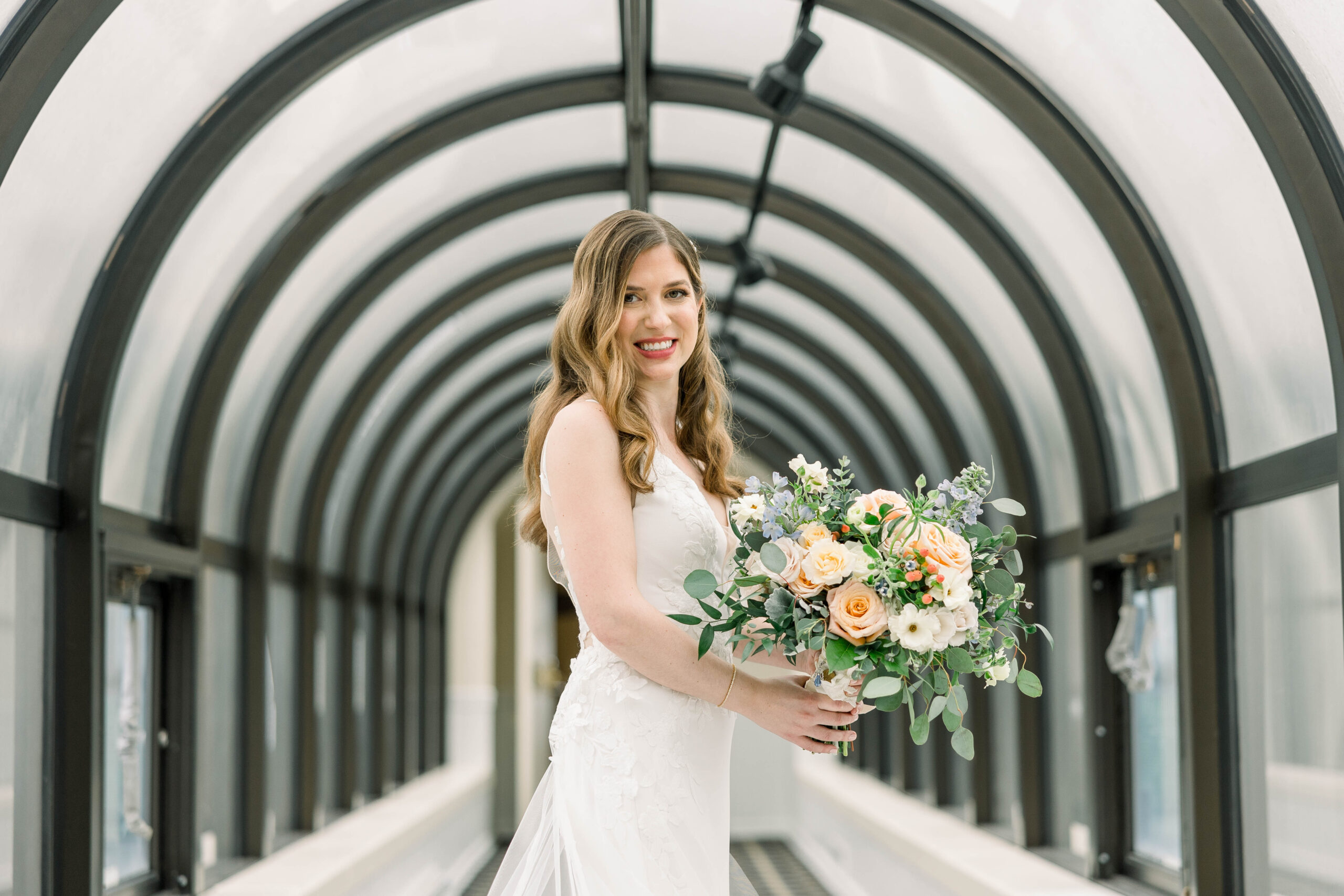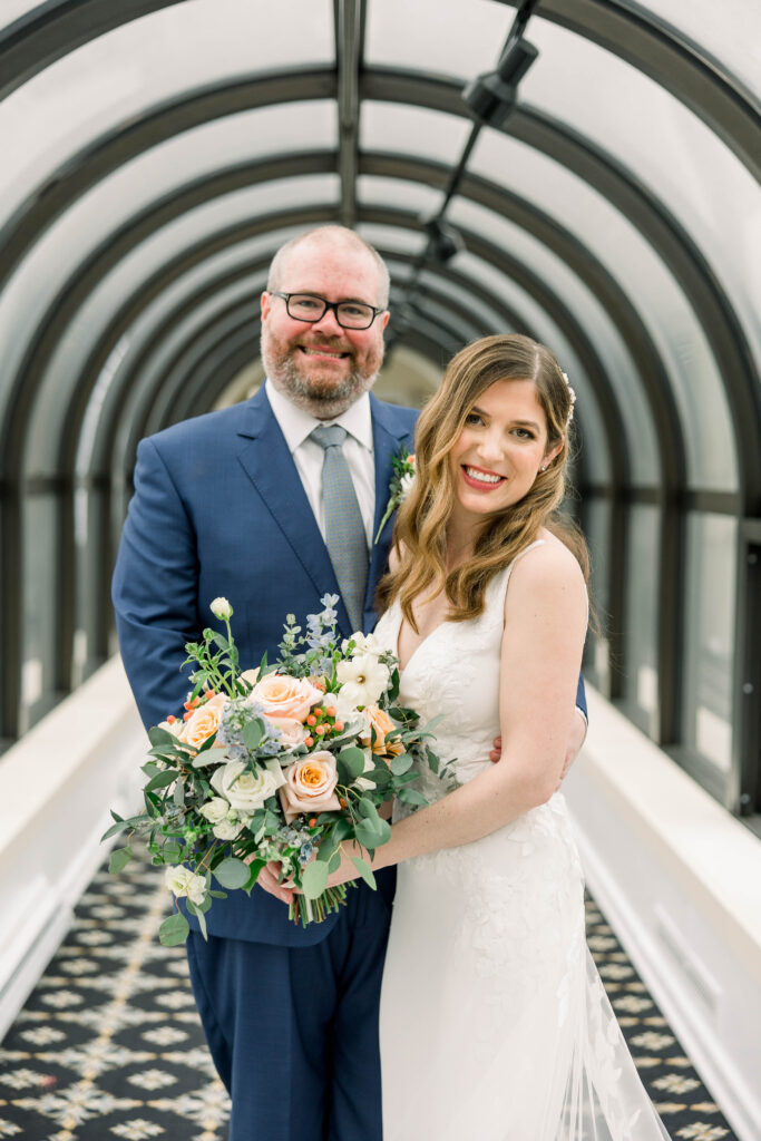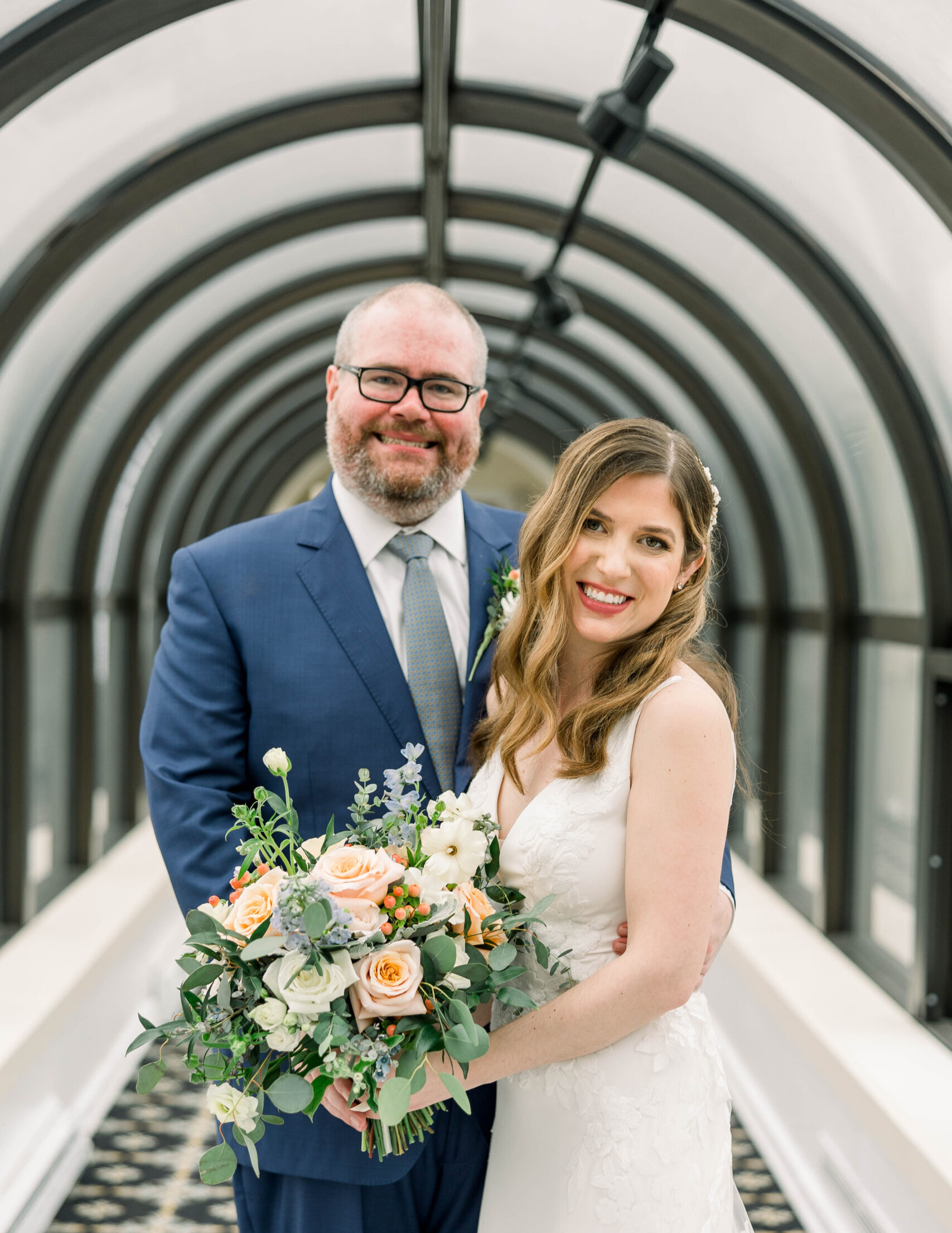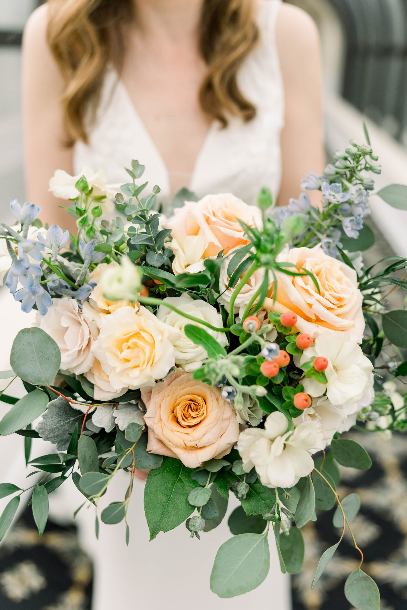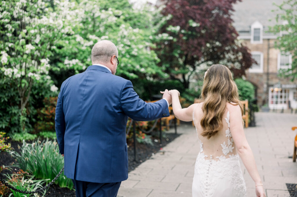 Dana’s bridal shower theme included a watering can motif, so the wedding itself “was meant to symbolize in bloom,” Dana says. “In reality, we did get some April showers and moved the ceremony indoors two days prior. Ultimately, we were so happy with how everything turned out, even with the last-minute changes, as the vibe was truly more romantic, intimate, and focused on small details.”