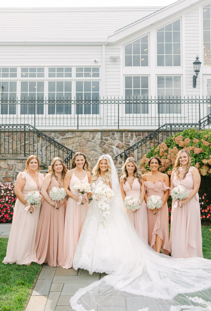 The couple’s vision of a vintage, romantic, elegant and timeless vibe came to life throughout the space. Florals were white and blush roses with hydrangea and greenery. Entertainment-wise, they had keys and violin for the ceremony, sax and keys for cocktail hour, and a percussionist and sax player with the DJ for the reception.