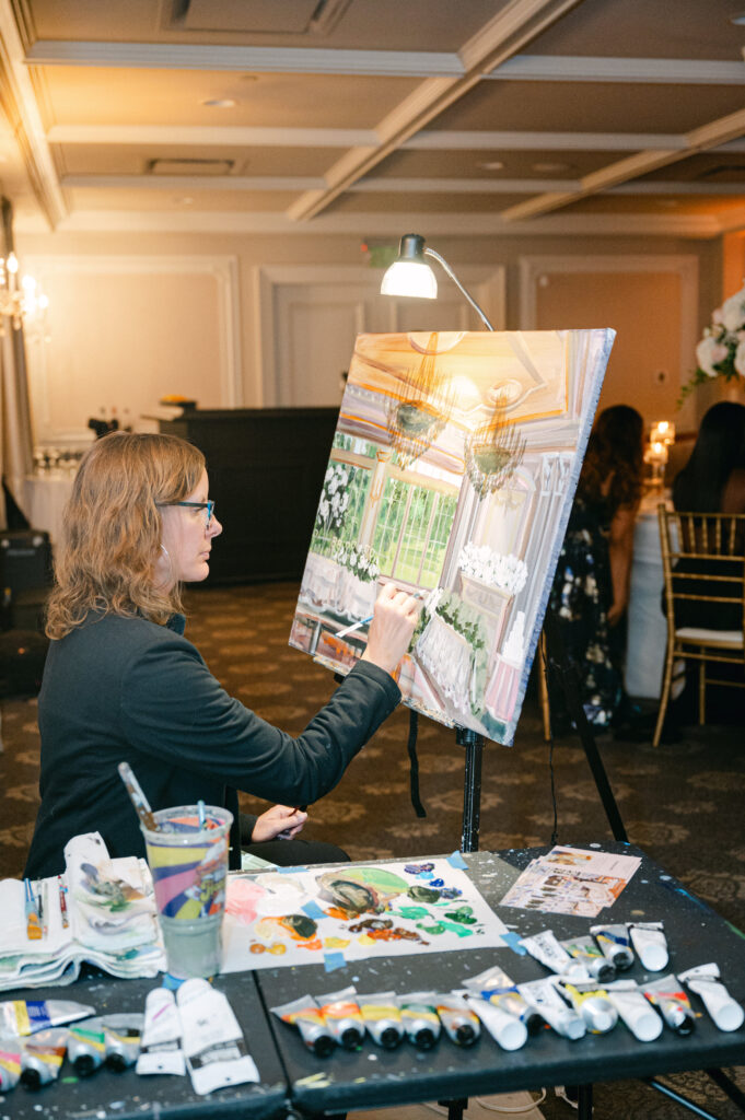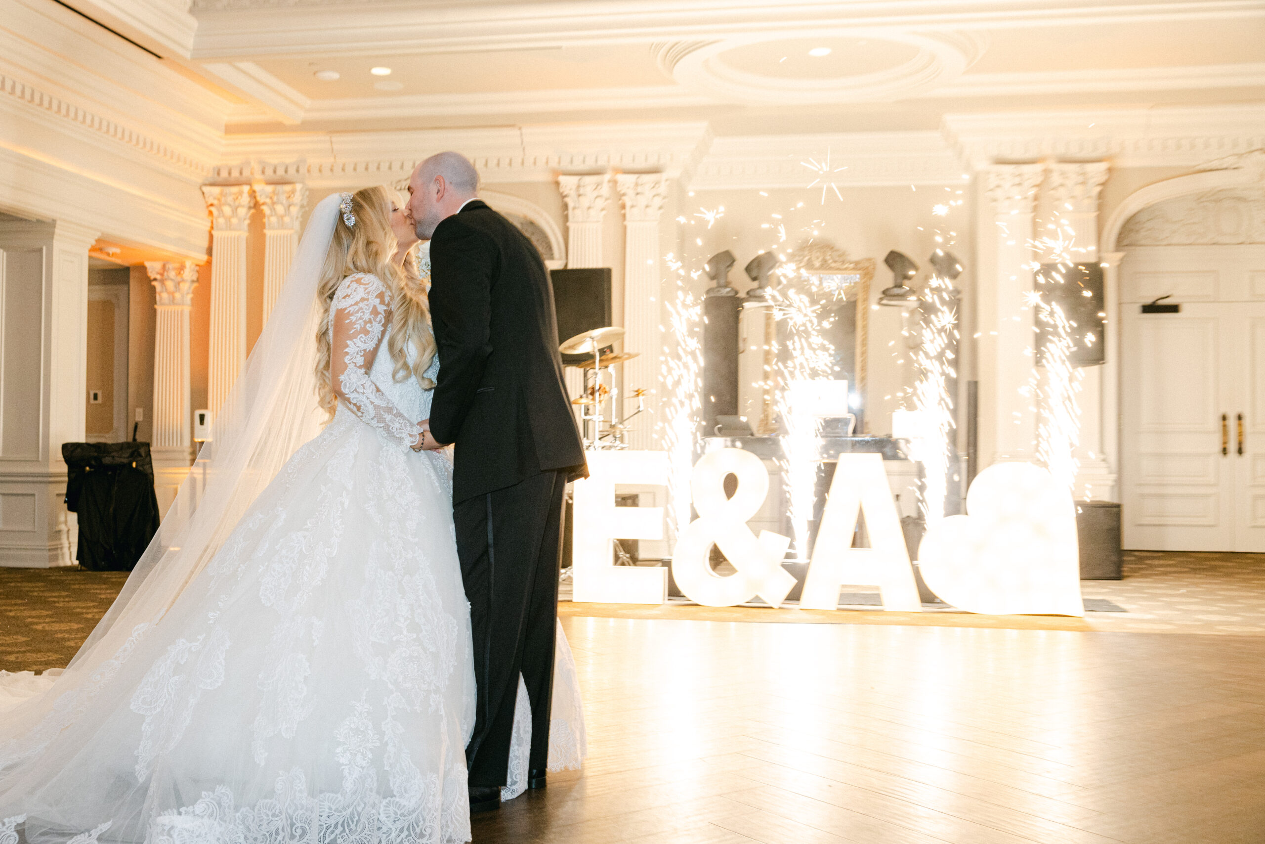 Other touches included a custom monogram, a life painter who captured their first dance, a cigar bar for the last two hours of the reception, and marquee letters from Alpha-Lit.