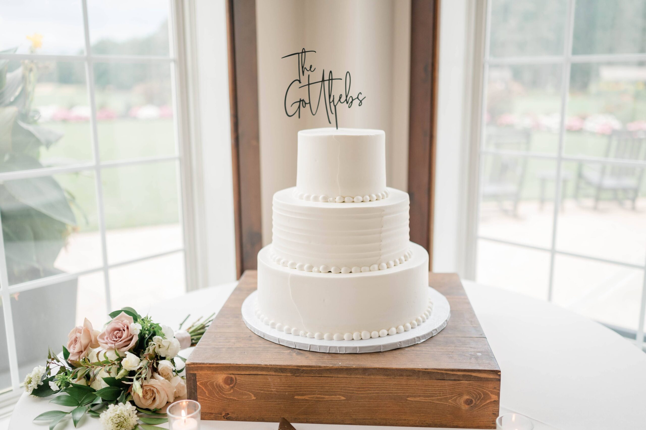 The florals we’re all roses of white, taupe and blush colors with greenery!